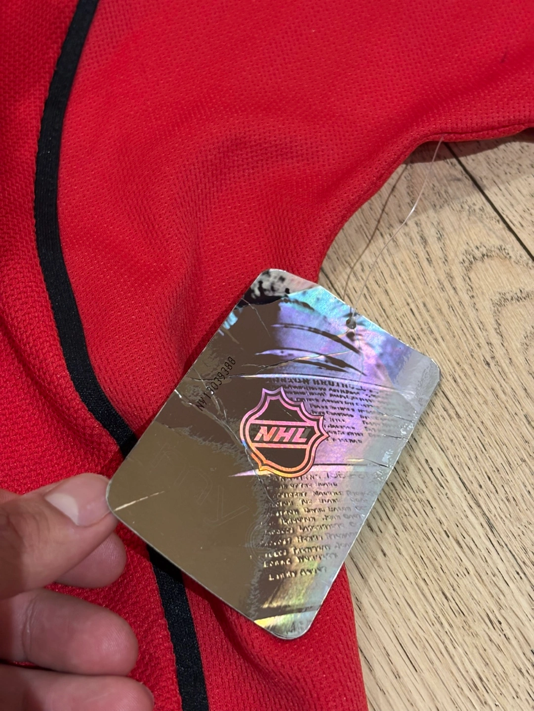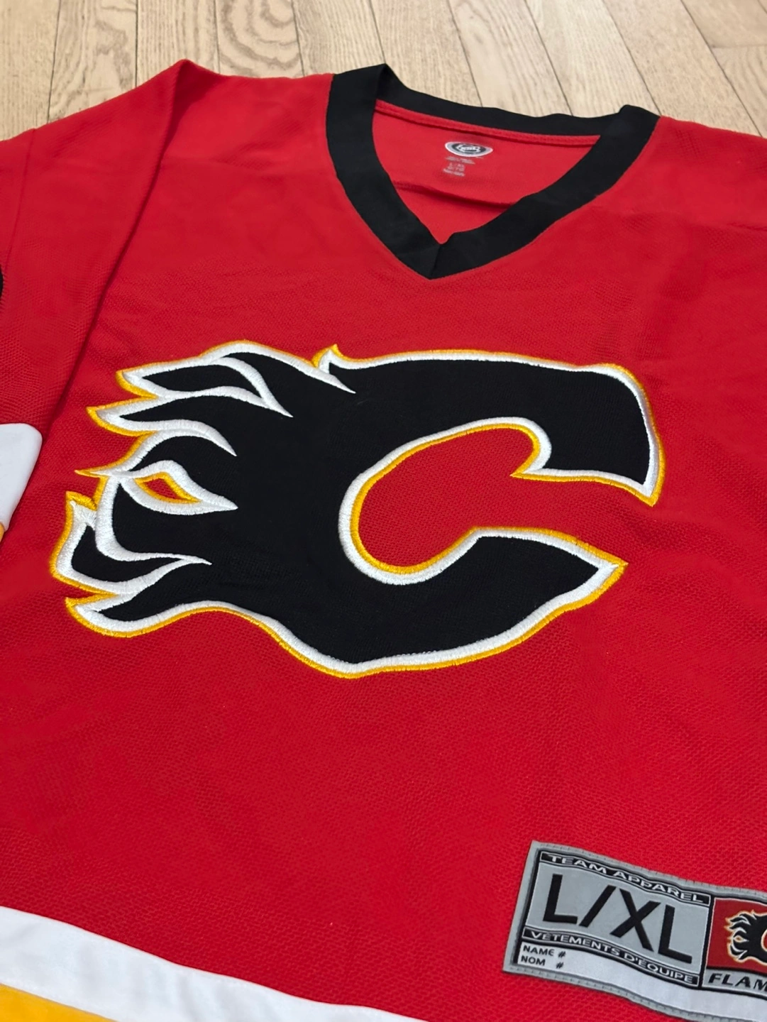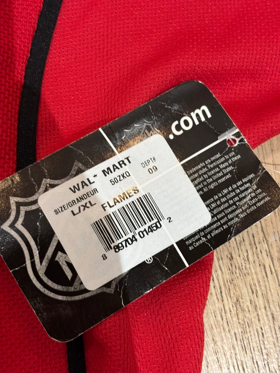 Men's Calgary Flames hockey jersey. Size XXL. Red, black, white and gold colours. V-neck. Long sleeves. Team Apparel brand. New with tags.