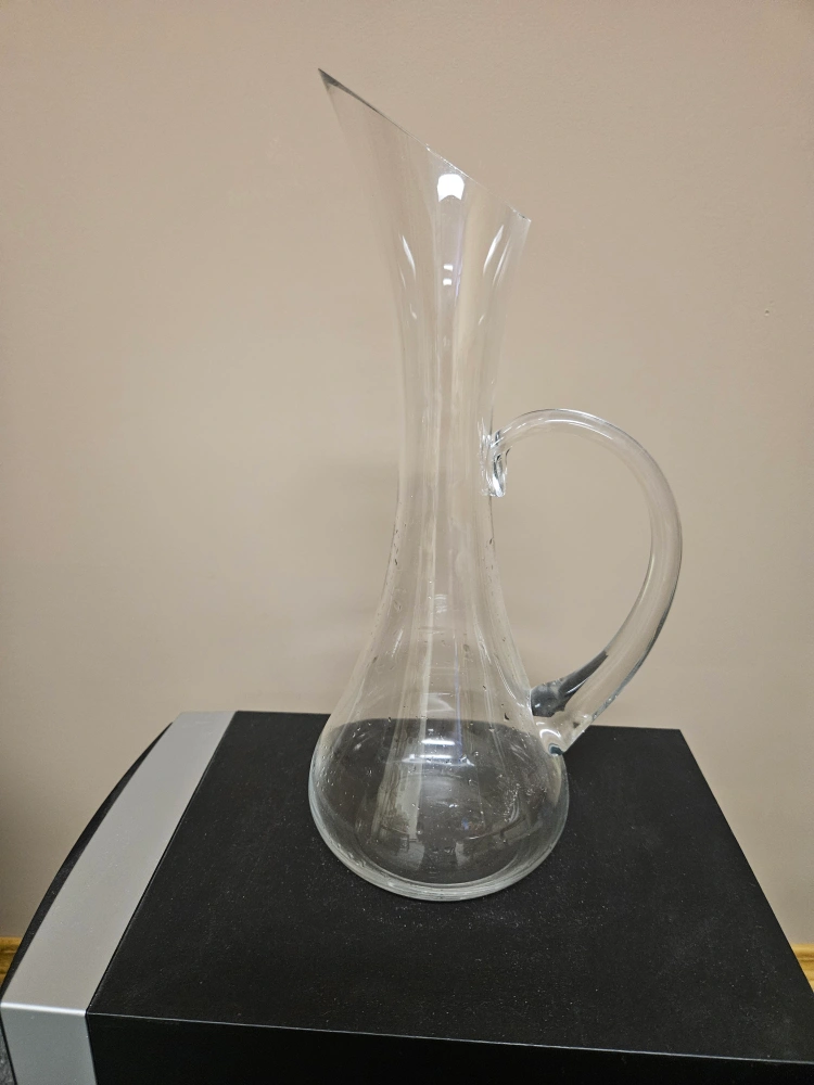 Beautiful glass decanter. Clear glass. Unique shape. Perfect for serving wine or other beverages. $15.⁰⁰. Ph. 204-612-7831