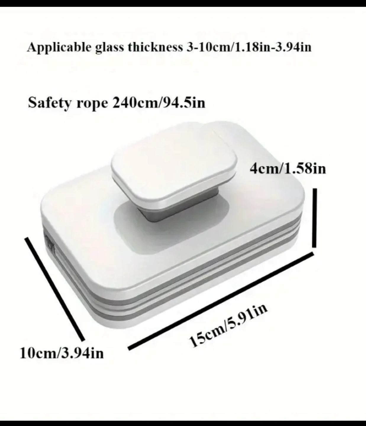 window cleaner. Suitable for glass 3-10cm thick. Includes safety rope