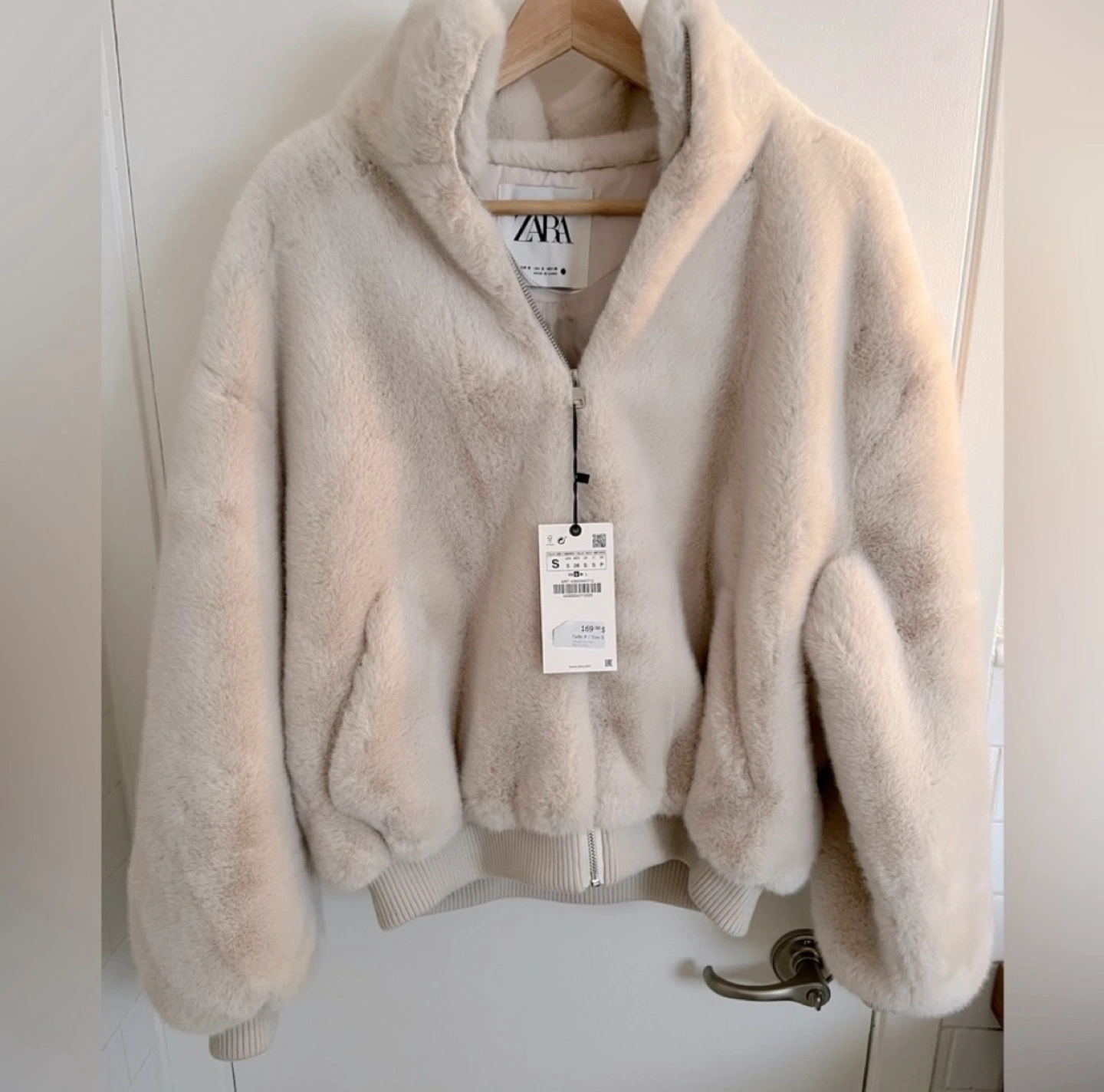Oversized cream faux fur jacket. Zip-up closure. Relaxed fit. Soft and cozy. Perfect for colder weather. New with tags! Original price $169!