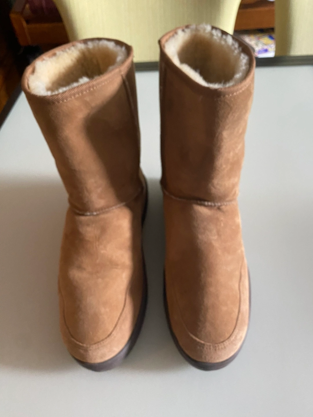 “Never used “ one is brown and one is black , I have two sets.Warm and cozy UGG boots. Brown suede exterior, sheepskin interior. Good condition, minimal wear. Perfect for cold weather.