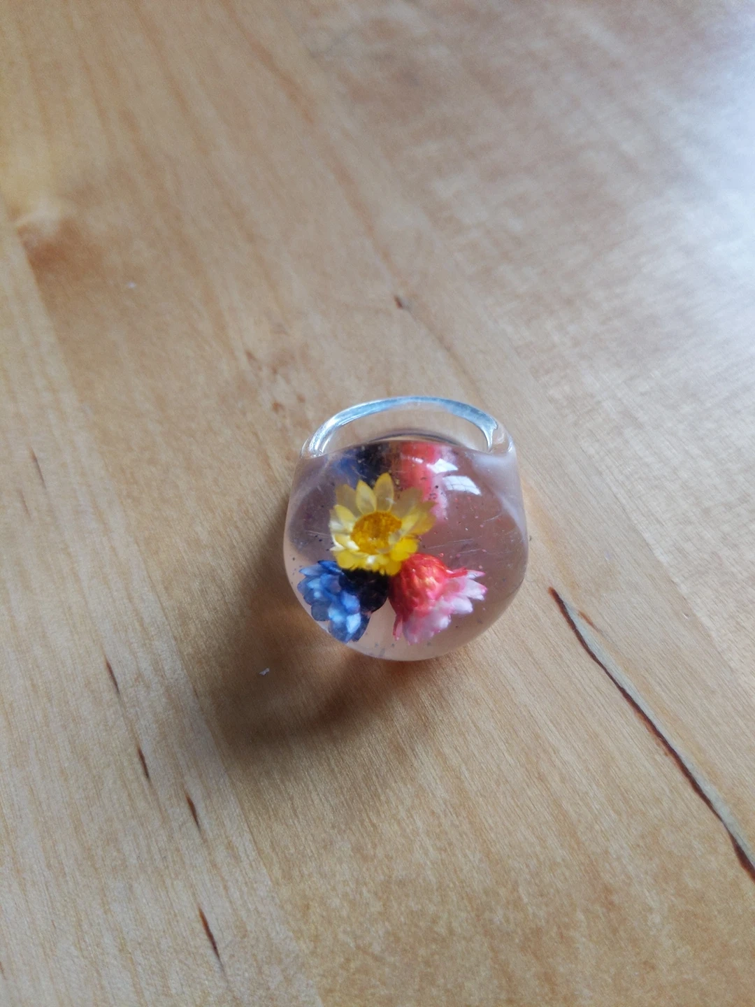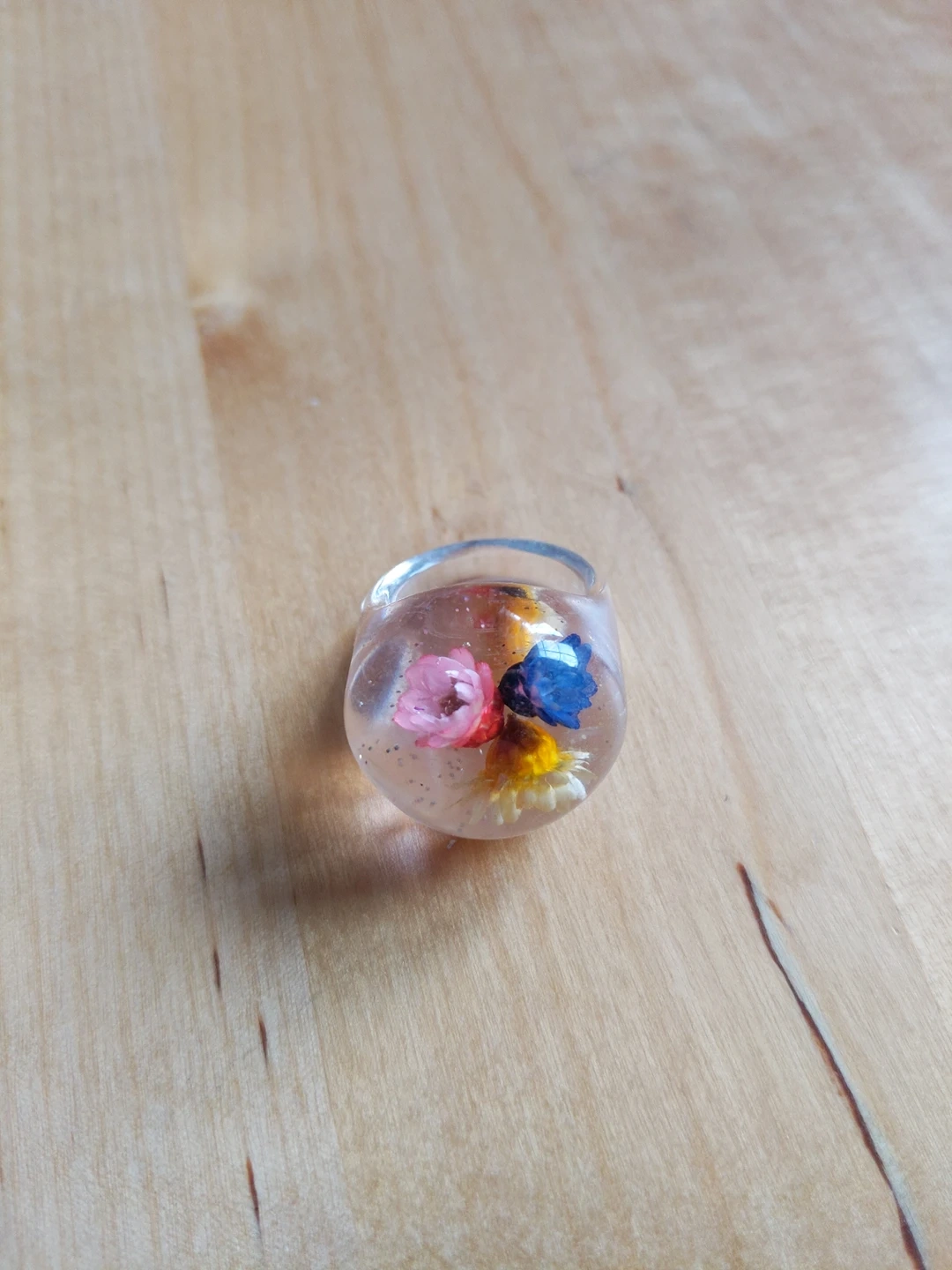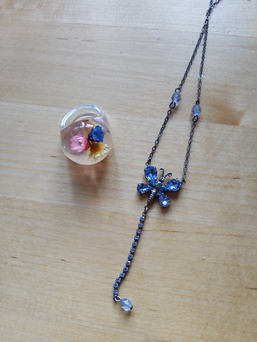 blue butterfly necklace 🦋 worn once dried flower bobble ring glitter inside together for $5 obo