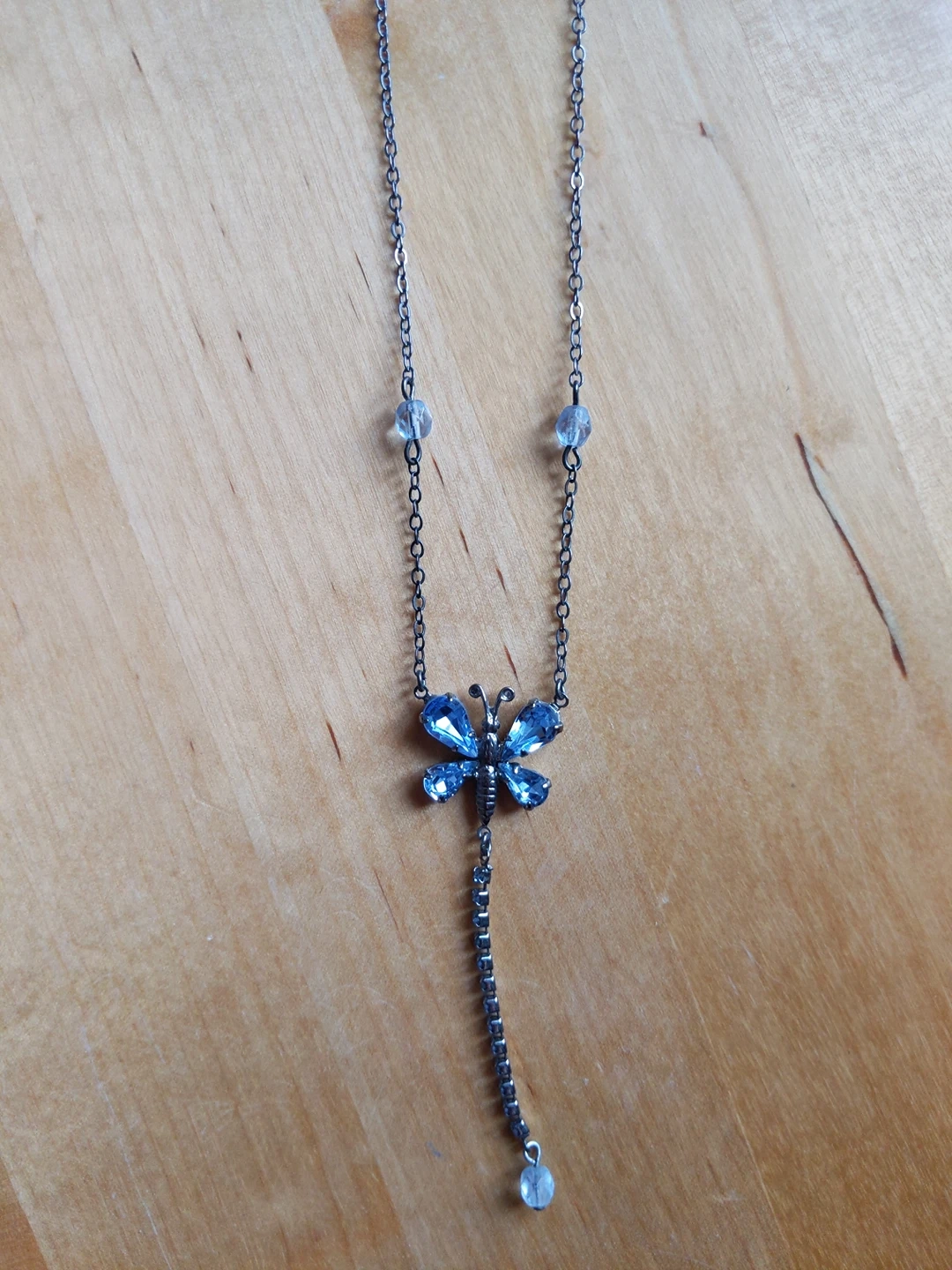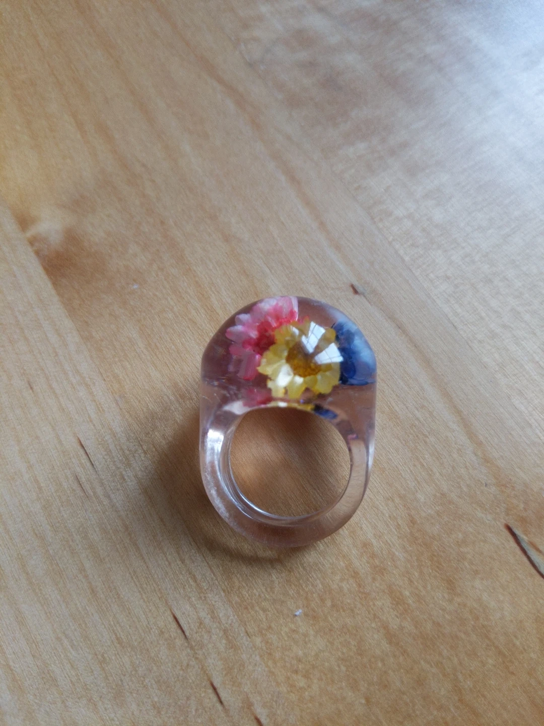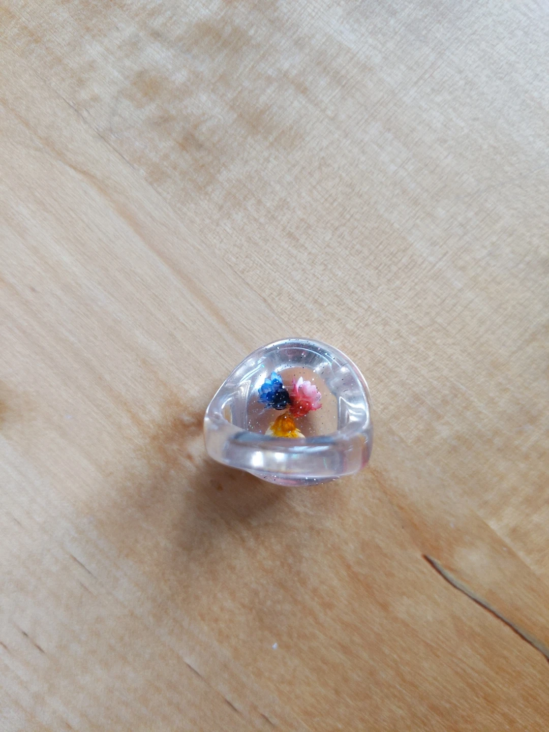 blue butterfly necklace 🦋 worn once dried flower bobble ring glitter inside together for $5 obo
