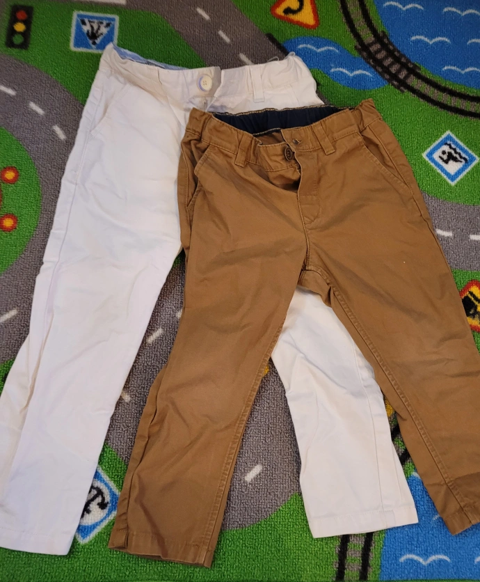 bundle of boys' clothing. Includes short and long sleeve t-shirts, featuring various designs and colours. Some shirts show minor wear. Sizes are approximately 3T-4T. Two pairs of boys' pants included. 2 long sleeves tshirts 5 short sleeves, graphic (canada is gone) 2 pants Various brands Lacoste, h&m, primark, carter's, baby gap 3t, 4t toddler boy clothes $20 for all obo