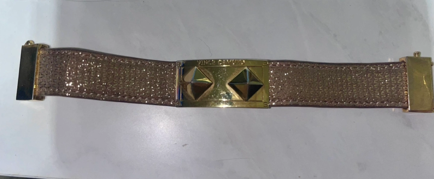 Vince Camuto Pyramid leather bracelet. Gold tone hardware. Adjustable closure. Subtle wear.