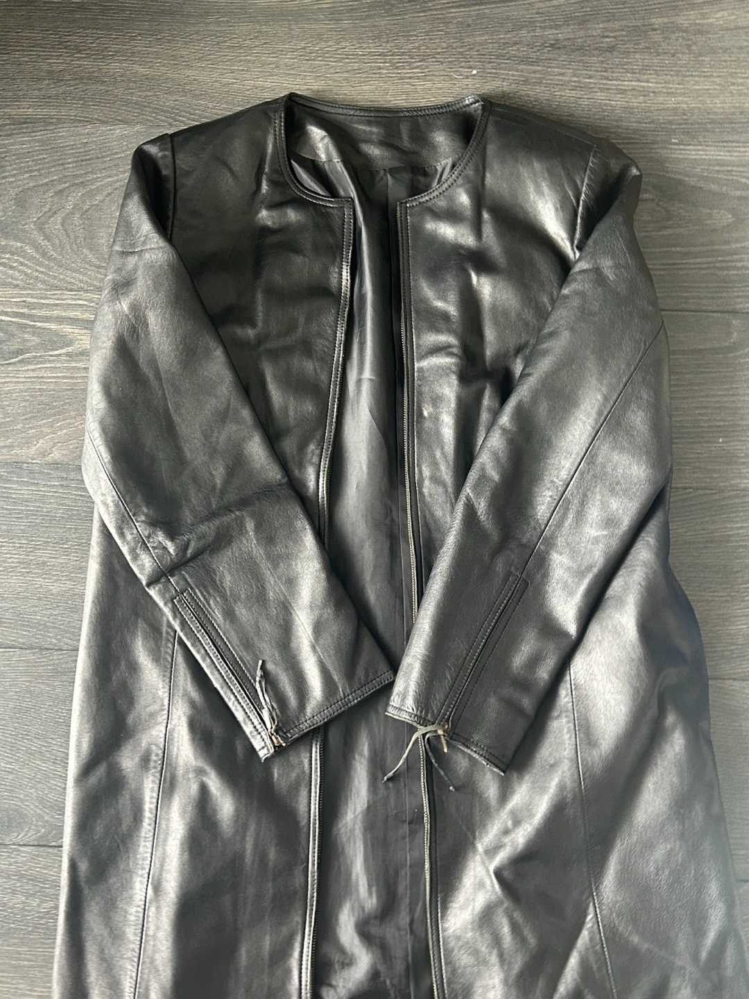 Long Black Genuine leather jacket. Mint condition Fits S-M
