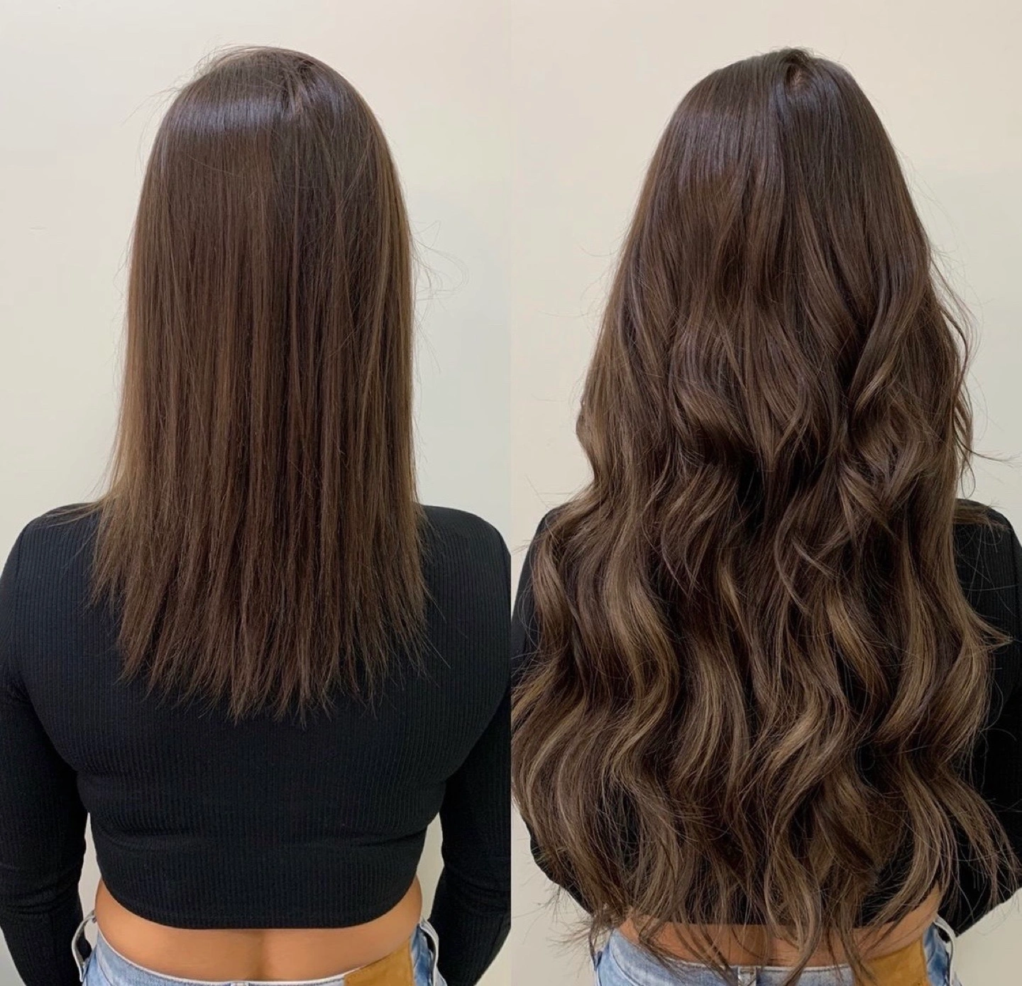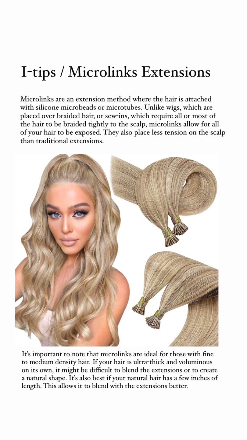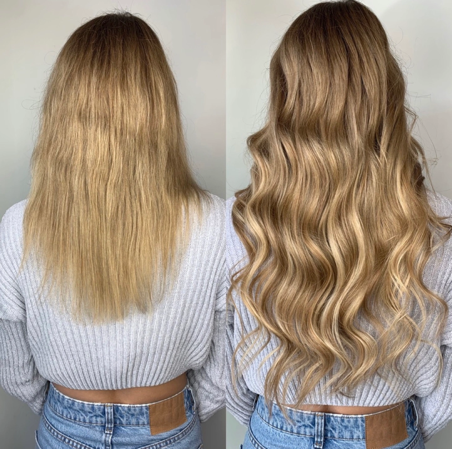 Pre-bonded keratin U-tip and fusion hair extensions. Lightweight and comfortable. Easy to wear long term. Also included are tape-in extensions, a popular method; quick and easy to apply. The lightest and least damaging. Microlinks are another option; ideal for fine to medium density hair. Blends well. Various colours available.