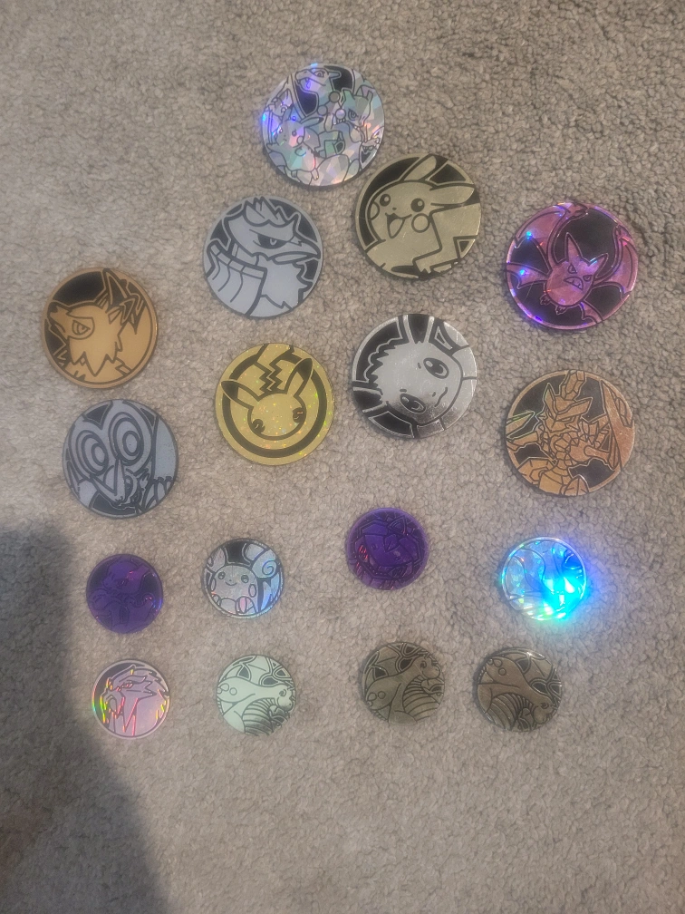 Collection of 18 Pokemon Center medallions. Various Pokemon featured. Different colours and finishes. Great for collectors. figured since I don't use them anymore would price them little below market value and sell them off to starting collectors can negotiate price
