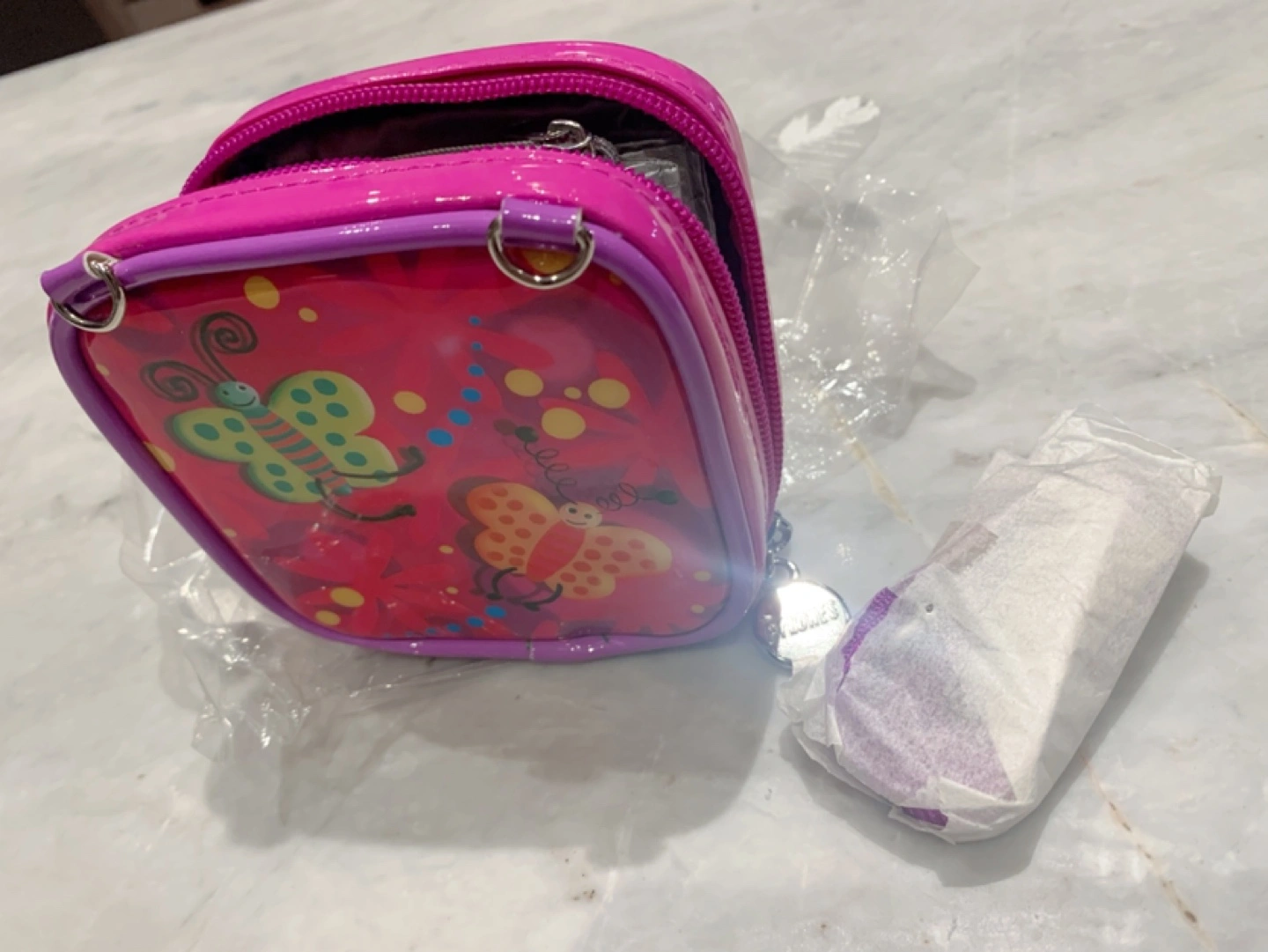 β¨ Brand New Pylones Paris Pouch / Small Bag with Detachable Strap β¨ π Description: β’ Brand: Pylones (French design brand) β’ Model: Porte Monnaie / Pouch β’ Color: Vibrant pink and purple with playful butterfly and fairy designs β’ Material: Glossy waterproof exterior with fabric lining β Brand new, unopened packaging β Never used β Double-sided design β Different cute illustrations on both sides (one side features a fairy, the other side has colorful butterflies) β Comes with a detachable shoulder strap, allowing for versatile use β Double-zipper design with multiple compartments for organizing coins, cards, and small essentials β High-quality metal zipper pulls with Pylones branding β Unique and colorful Pylones Paris artwork, making it a fun and stylish accessory β Made in China but designed in France β CE Certified β Meets European safety standards π¦ Condition: β’ 100% brand new, never opened β Still in its original plastic packaging π’ Safety Notice (as per packaging): β’ Intended for children above 36 months β’ Contains small parts, which could represent a choking hazard β’ This is not a toy β Please keep for future reference π Perfect as a gift or for personal use! Unique and stylish, a great addition to any accessory collection.