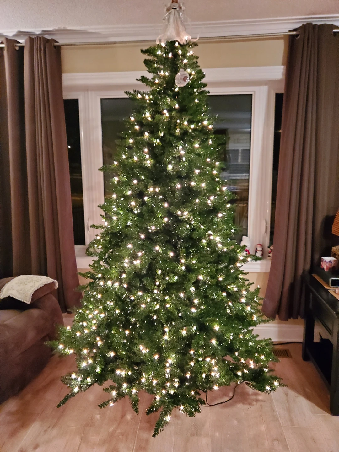 7 foot tall pre-lit Christmas tree. Comes with stand, 3 very easy to assemble pieces. You don't even need to decorate this because it's quite pretty as is. I am downsizing next year so this must go. Cash only, pick up only near St Clair and Victoria Park. I do not have the original box. No reasonable offer refused. Will be available for pick up Jan. 2nd.
