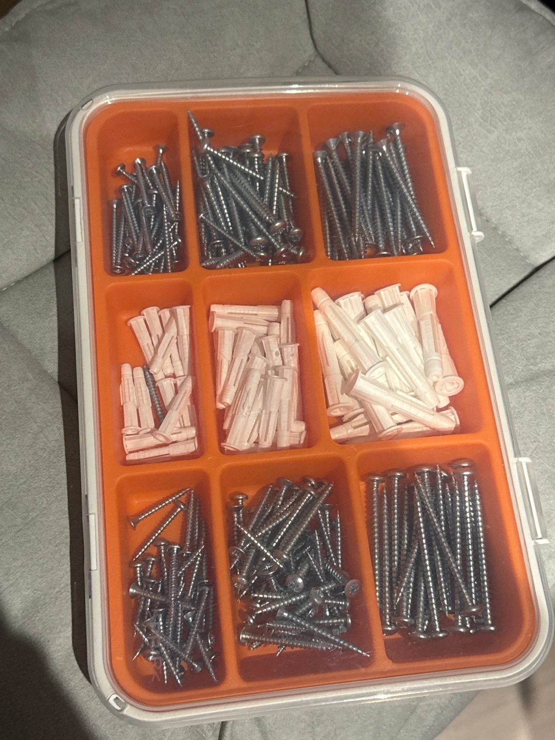 Handy assortment of screws and wall anchors. Great for various home projects. Includes different sizes and types. Perfect for DIY enthusiasts.