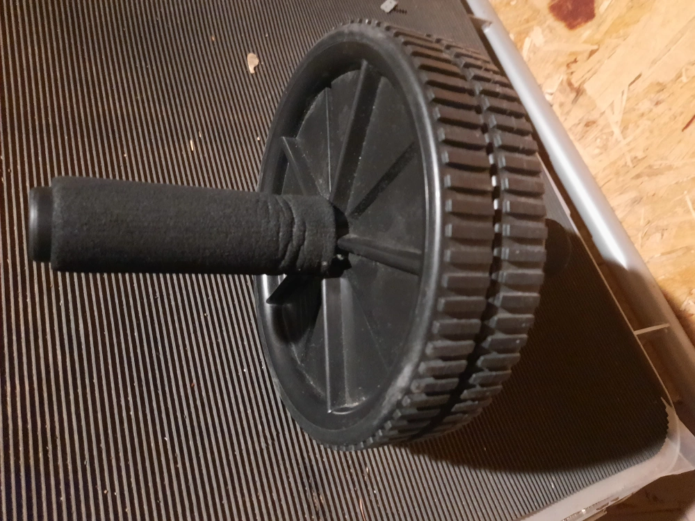 Core strengthening ab wheel. Durable construction. Great for home workouts. Black colour.
