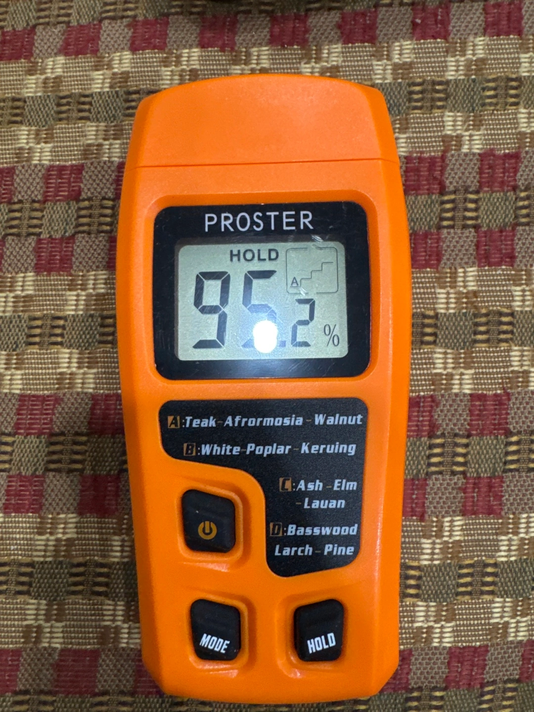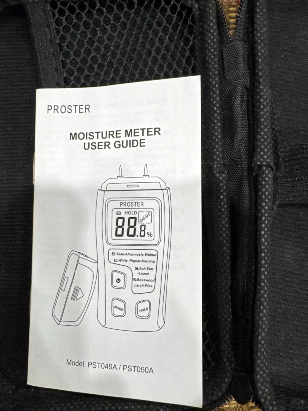 Digital moisture meter. Measures moisture content in wood. Multiple wood types selectable. Includes carrying case and instructions. Used but in good condition.