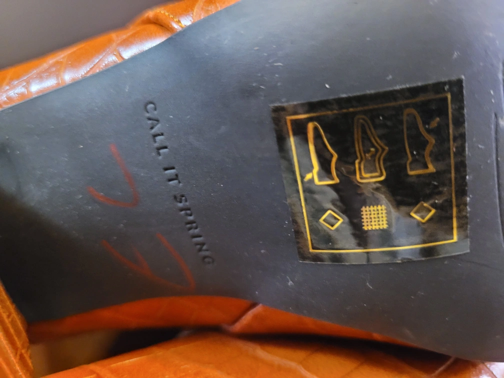 New Women's ankle boots. Brown, crocodile-embossed vegan leather. Block heel. Pointed toe. Size 8. $ 40 obo spring boots, fashion shoes.