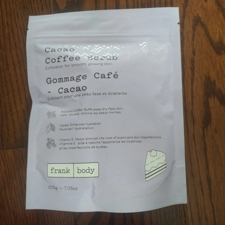 Exfoliator for smooth, glowing skin. Contains Robusta coffee, Cacao, and Vitamin E. Buffs away dry, flaky skin, enhances hydration, and helps diminish the look of scars and imperfections.