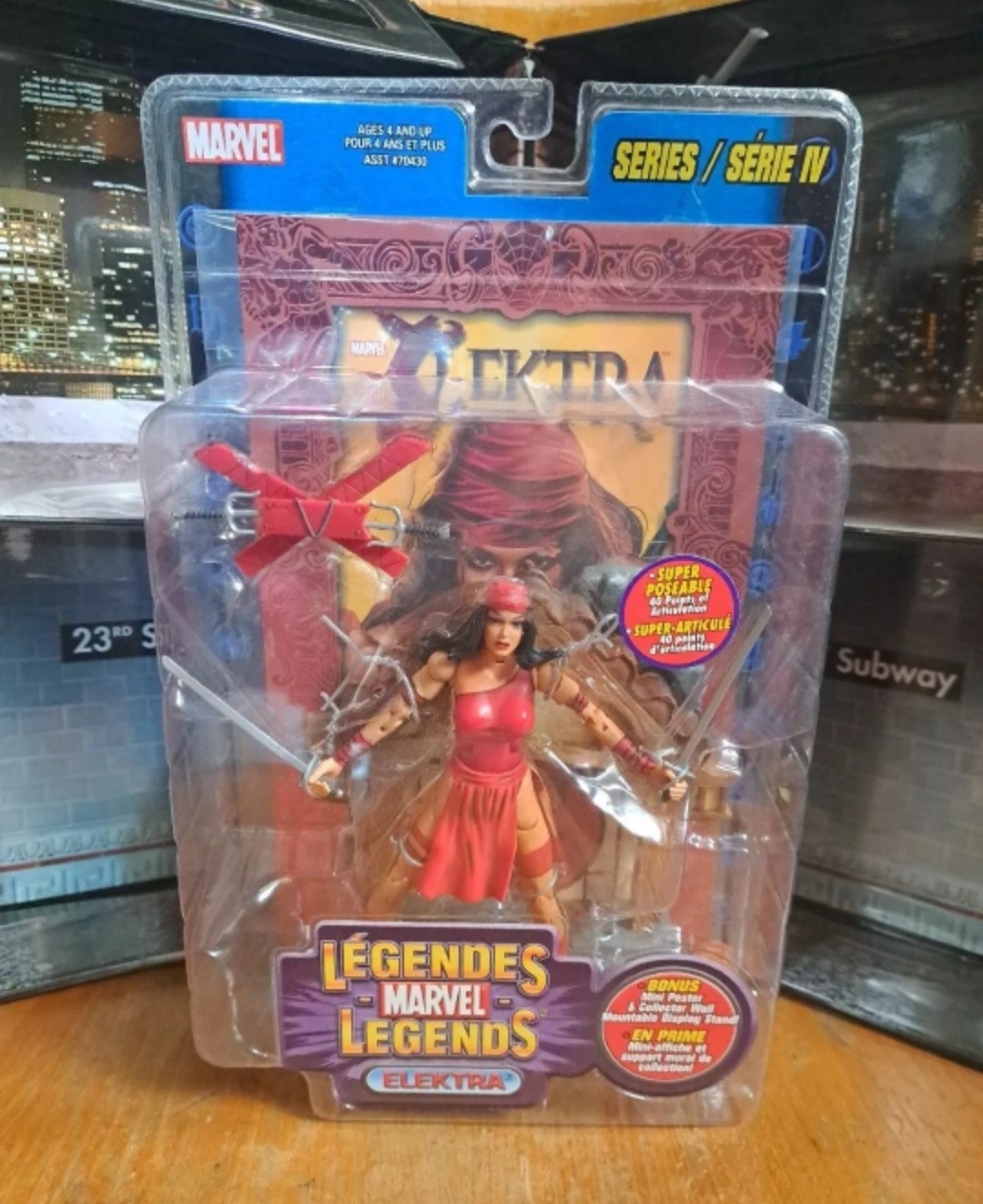 Collectible Marvel Legends Elektra action figure. Series 4. Includes accessories. New in package.