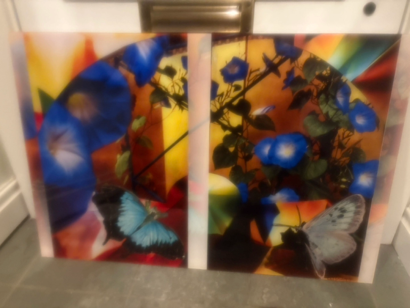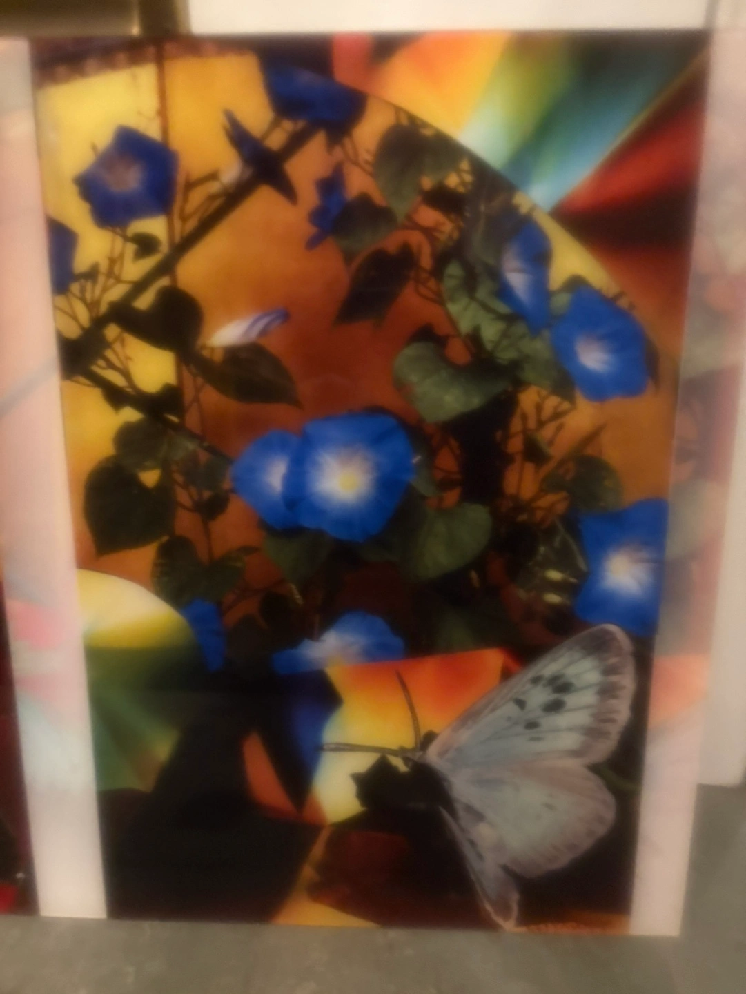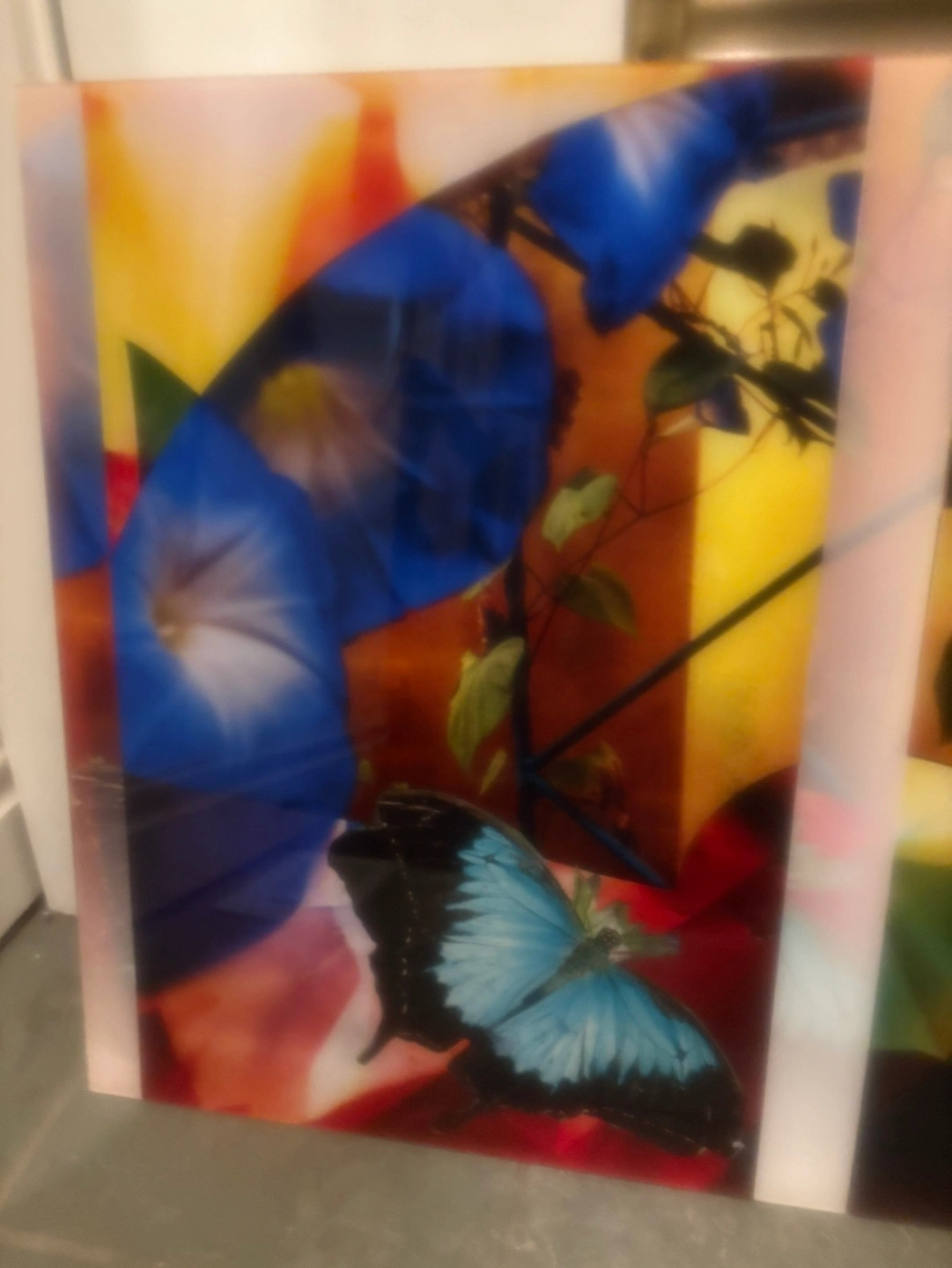 beautiful plexiglass print. Vibrant colours. Floral and butterfly design. Unique artwork. Excellent condition. Pet and smoke free home A special piece that won’t fit in my new place given I have to reduce from 200 pieces to 75 So a number of pieces are going to the AGO for their collection, and I’ll continue to post out as I weed through my storage space Available by appt for pick up to be arranged on Bloor and sterling rd befor 5 at 1421 and after 5 out front of 278 Sterling rd