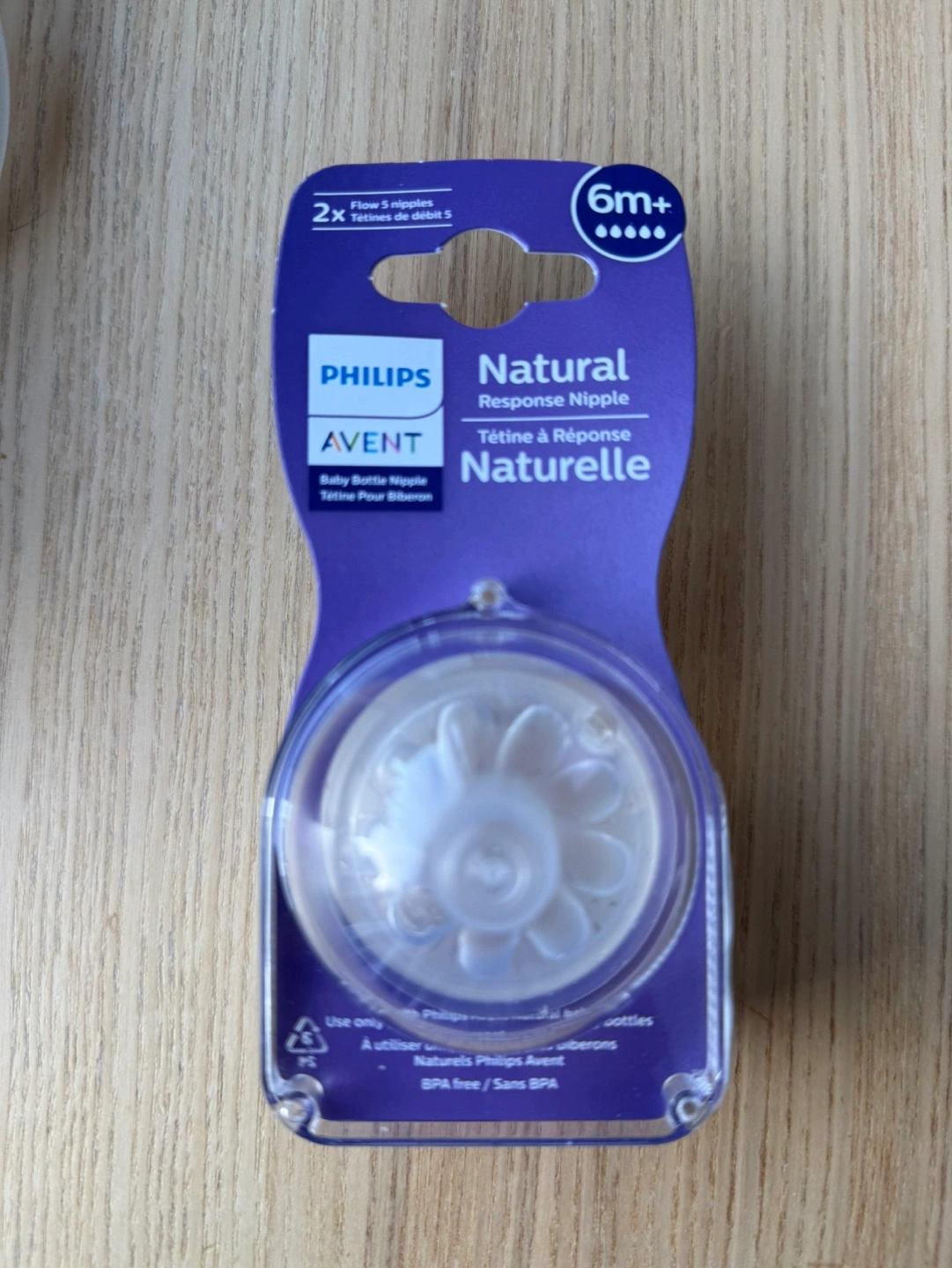 Brand new in packaging. Sealed! New Philips Avent Natural baby bottle nipples. Size 6m+. Two nipples per pack. BPA free. Suitable for Philips Avent bottles. Pick up at west end