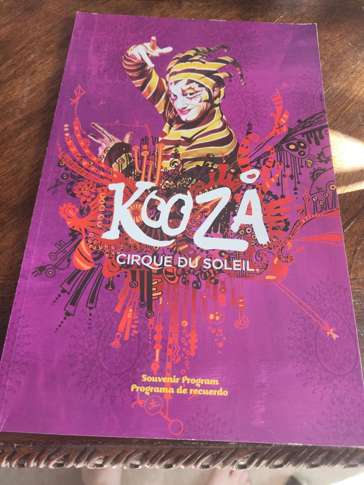 Souvenir program from a Cirque du Soleil Kooza show. Features colourful artwork and performer imagery. Collectible keepsake. Pickup at my location