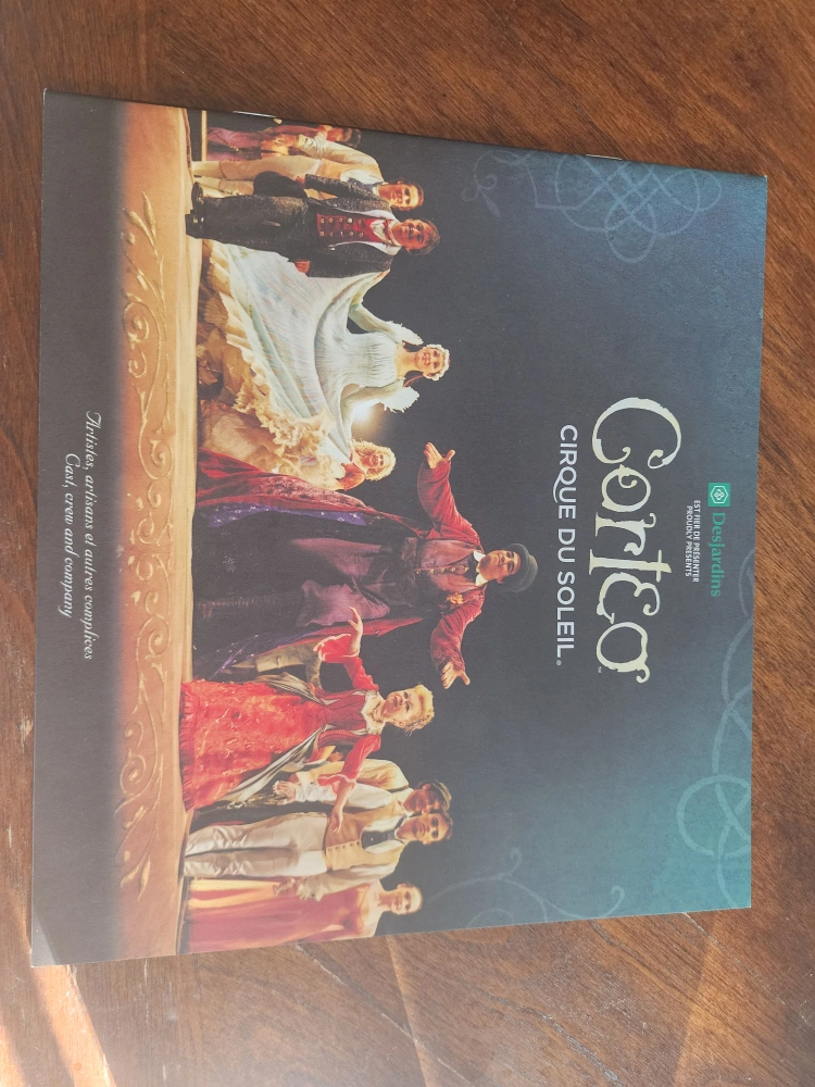 Cirque du Soleil Corteo program booklet. Features photos of performers and details about the show's cast and crew. Pickup my location