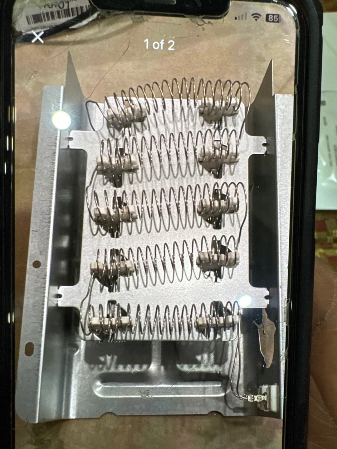 Used dryer heating element. Metal coils. Good condition. May fit various dryer models.