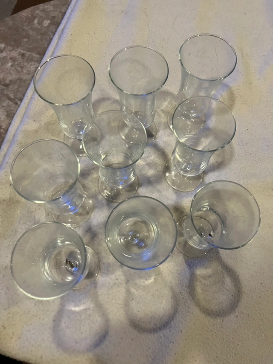 Set of 9 clear glass goblets/vintage parfait glasses. Approximately 6 inches tall. Elegant design, perfect for parties or everyday use. Cash only, p/up in Thornhill-Yonge St & Elgin St.
