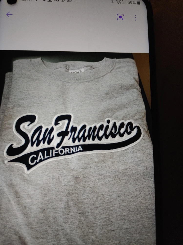 Anvil brand grey sweatshirt. Features a San Francisco California graphic on the chest. Crew neck style.