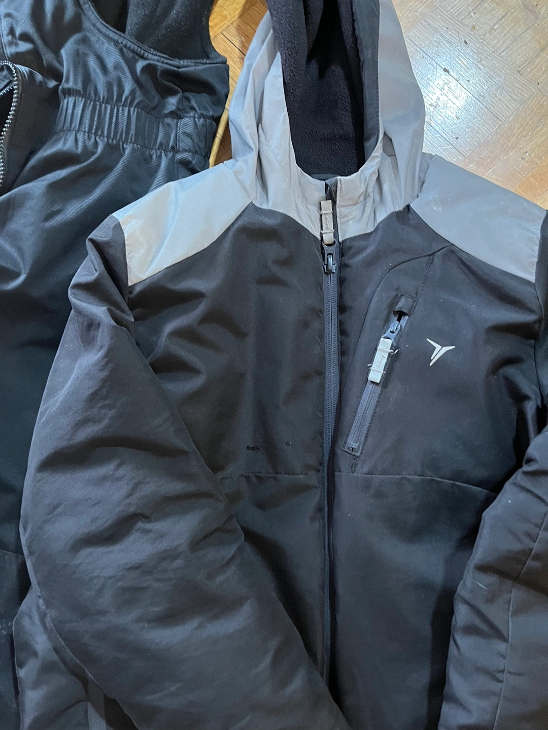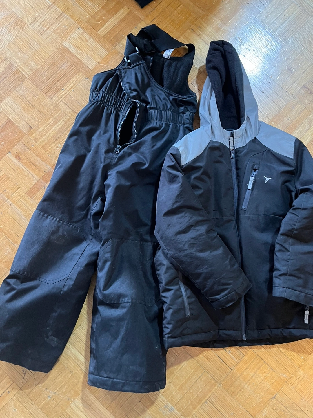 Boys' black snowsuit. Includes jacket and snow pants. Water resistant. Good used condition. Small marks. Smoke and pet free home Pants and coat both $10