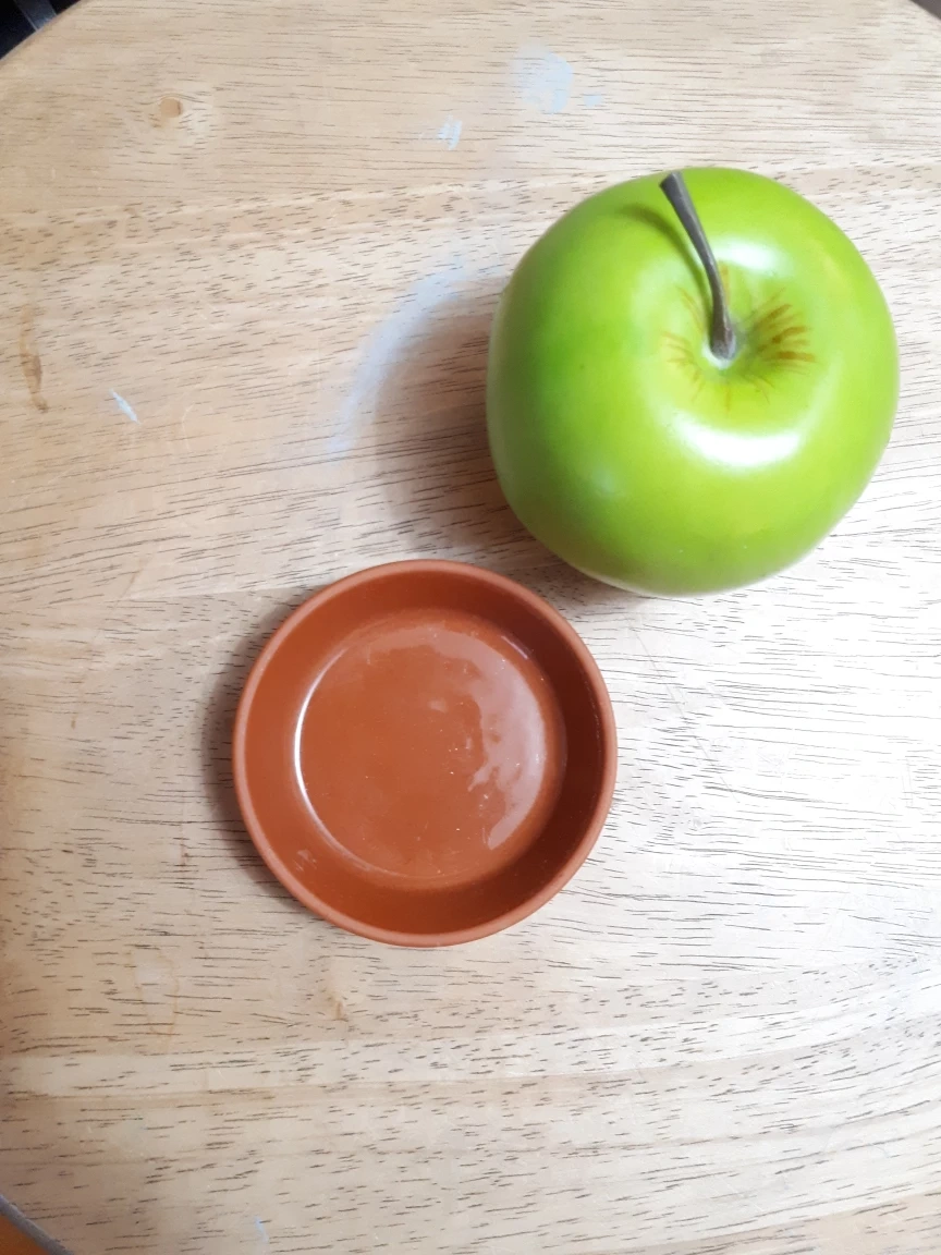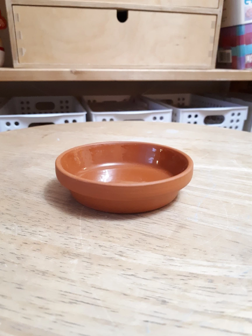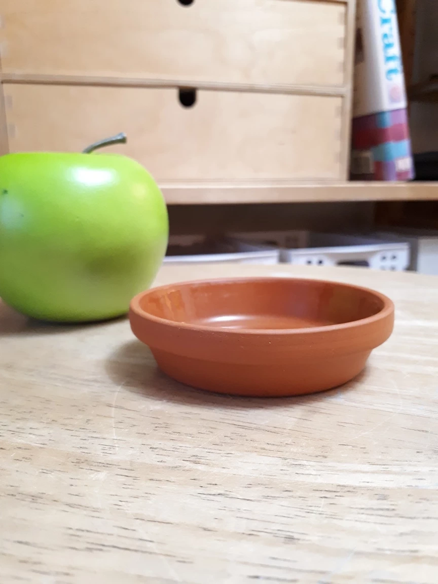 A small terracotta clay plant saucer. Perfect for little succulents. Top surface is glazed so water won't seep through. 3" across (see pics with ruler & big apple for scale). Used very briefly, it is as new! Prefer to bundle small value items π π See my other posts too