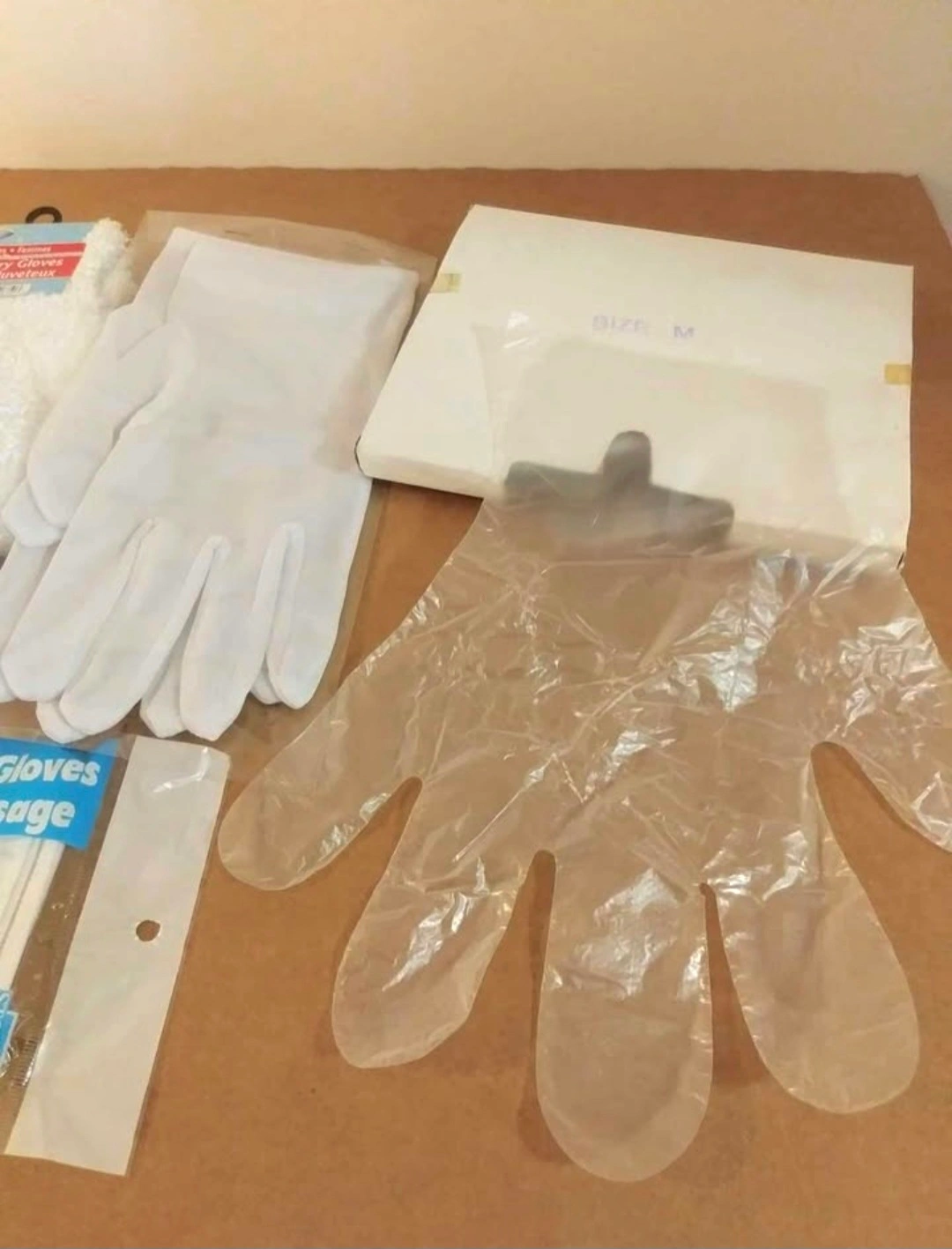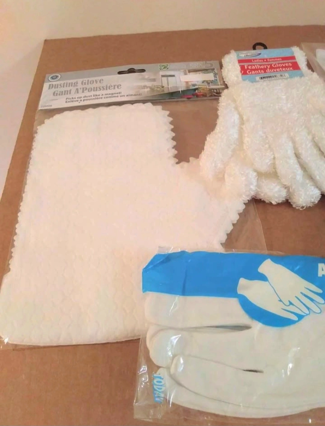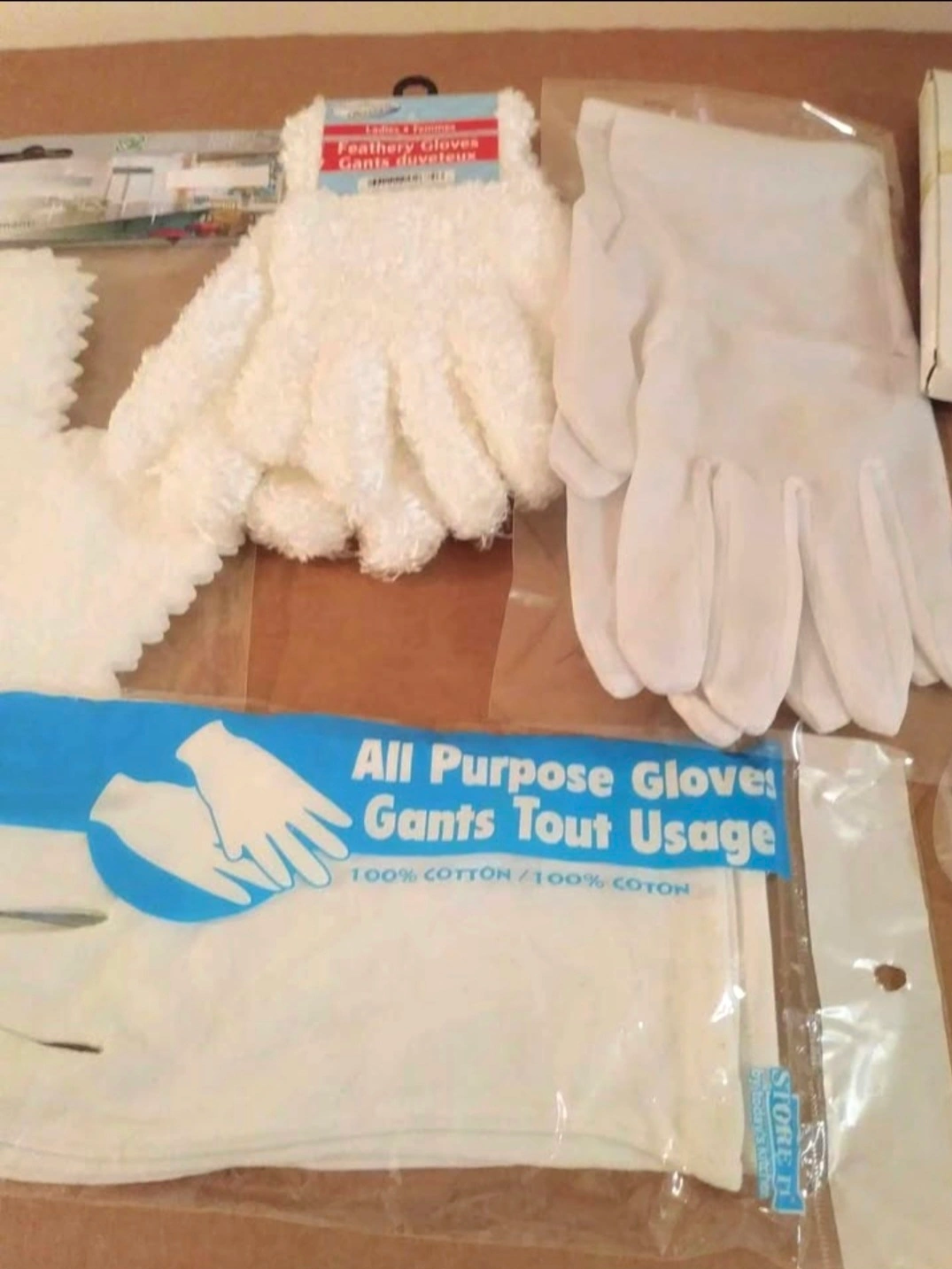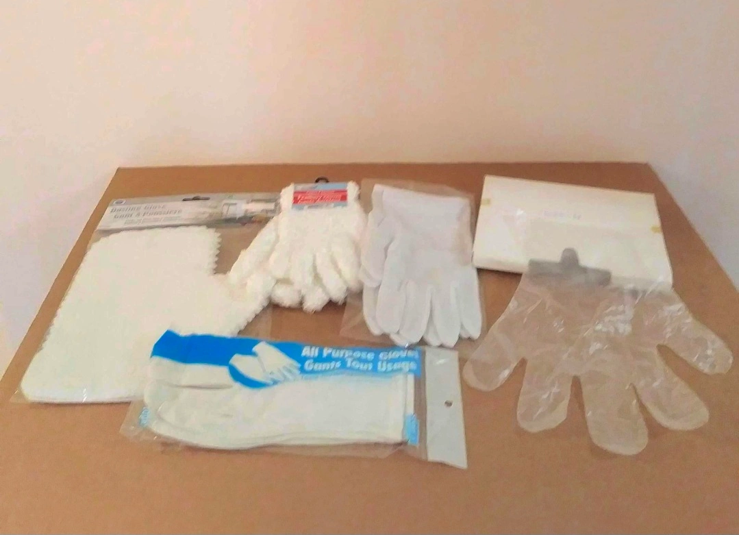 An assortment of new, multipurpose gloves for just $7. Items include reusable white cotton, polyester, feathery and dusting gloves; and a small box of disposable transparent poly plastic food service gloves. Size: M/L/XL. Available for pick up in Mississauga Square One near Celebration Square. Payment: Cash or e-Transfer.