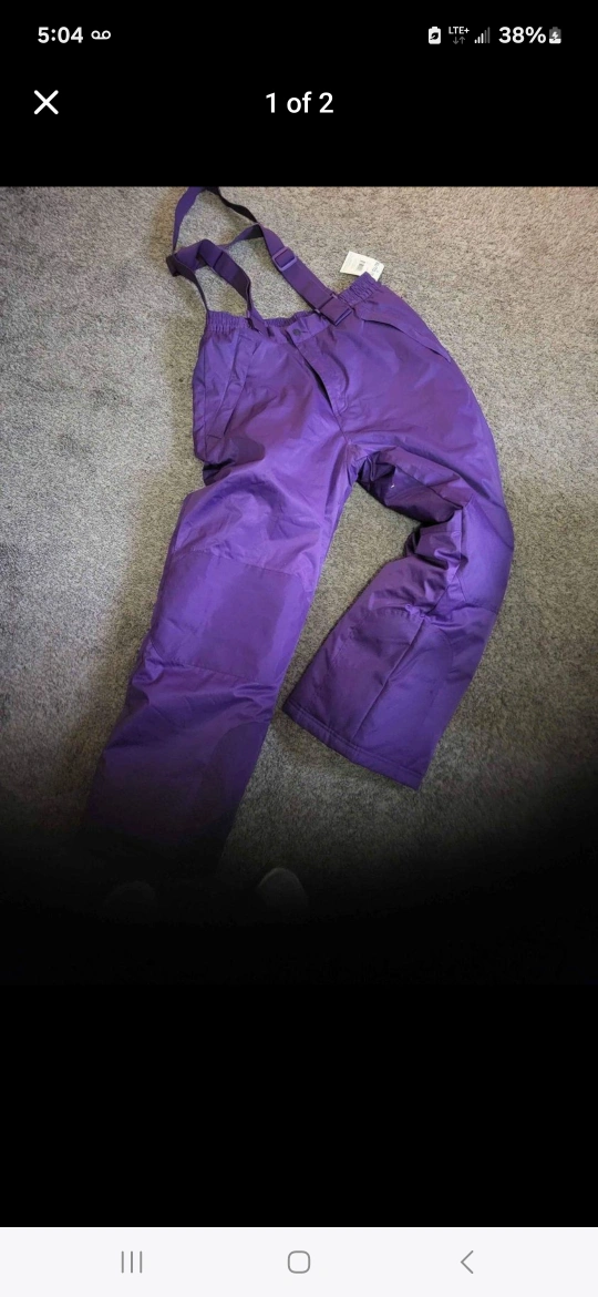 Girls New Purple snow pants with suspenders. Size XL(16) New with tags.