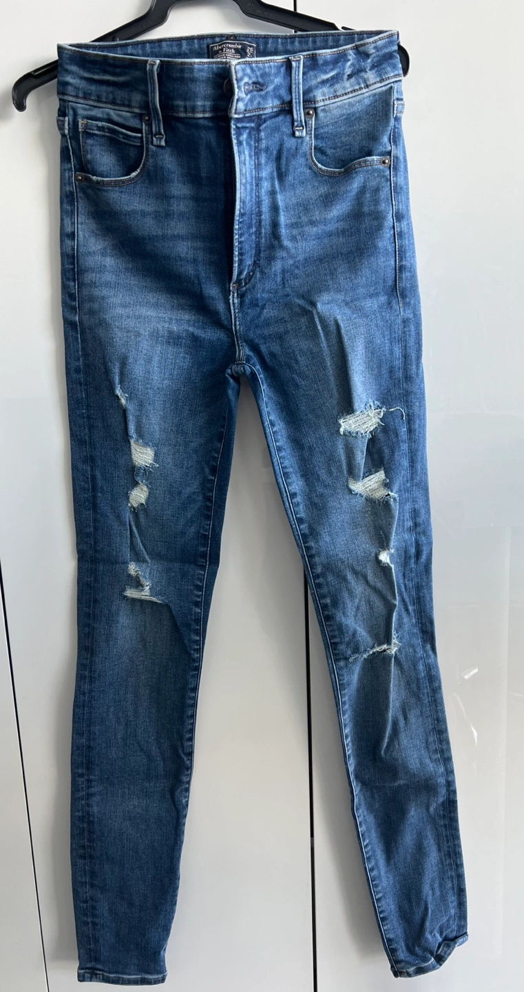 Women's distressed Abercrombie & Fitch jeans. Size 26. Highrise super skinny fit. Excellent condition, minimal wear.