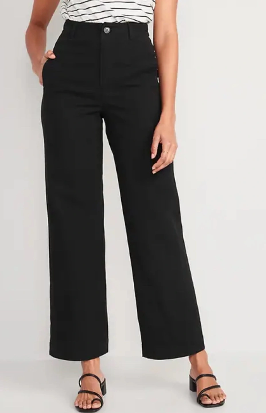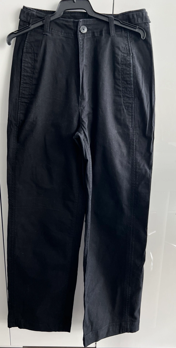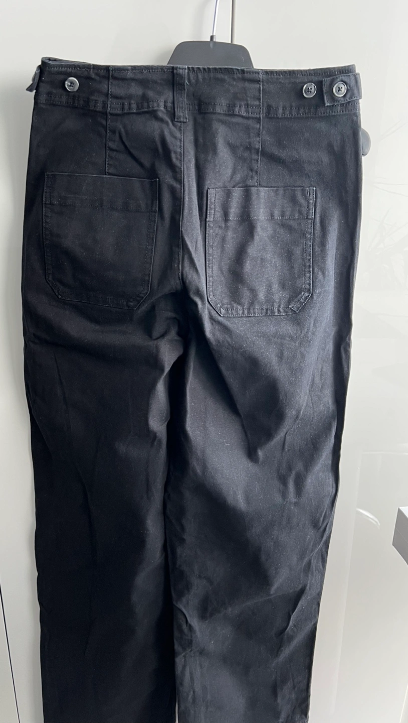Black wide leg pants. High-waisted. Button closure. Pockets. Excellent condition. Fabric : 98% cotton