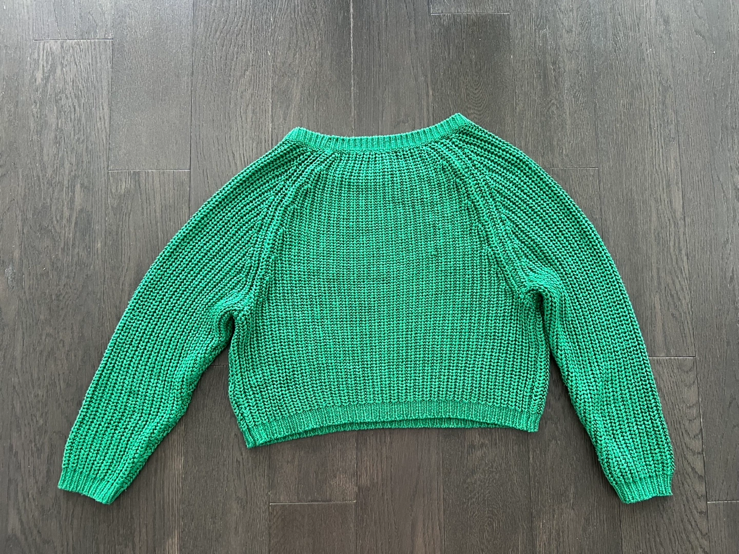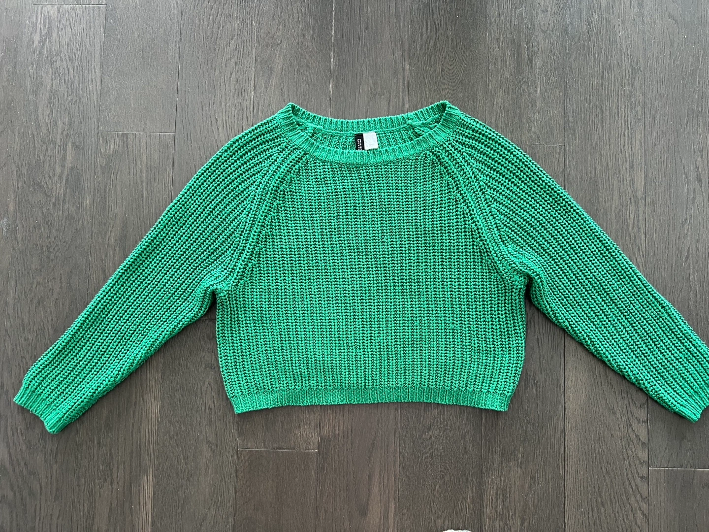 Women's cropped knit sweater. Relaxed fit.