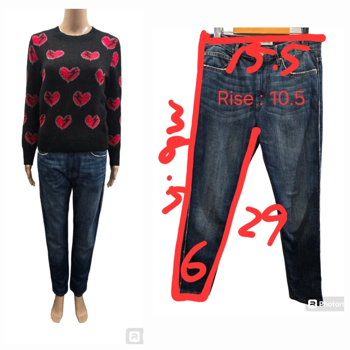 Isabel Marant Distressed Slim-Fit Jeans Size: Small (4-6) Approximate full measurements are shown in the picture. Low to mid-rise, sits on the hips. The mannequin is a size XS, and the jeans do not slide down, so if you typically wear a size S, these jeans should fit you well. Condition: 8.5/10 Aside from the natural distressed areas, there are no visible flaws, only some wrinkles and minor general wear from being worn. One belt loop has been repaired, and there is a stitched mark inside the jeans where the repair was made. Fabric: 100% cotton Features: - Slim-fit silhouette - Five pockets - Zip fly with belt loops - Small distressed areas, mostly on both sides of the jeans Original Retail Price : $450 Pick Up : North York Finch Subway Station Or Near Downtown Subway Line or Near Queen East and Logan Update : If you are a Downtowner (especially in the Queen East area) and need or want to try on items to make sure they fit, arrangements can be made to meet at my storage unit. You can also have a look at my other unlisted designer items at the same time. Bundle 3 or more items to receive discounts. Discount prices will vary depending on the items you bundle.