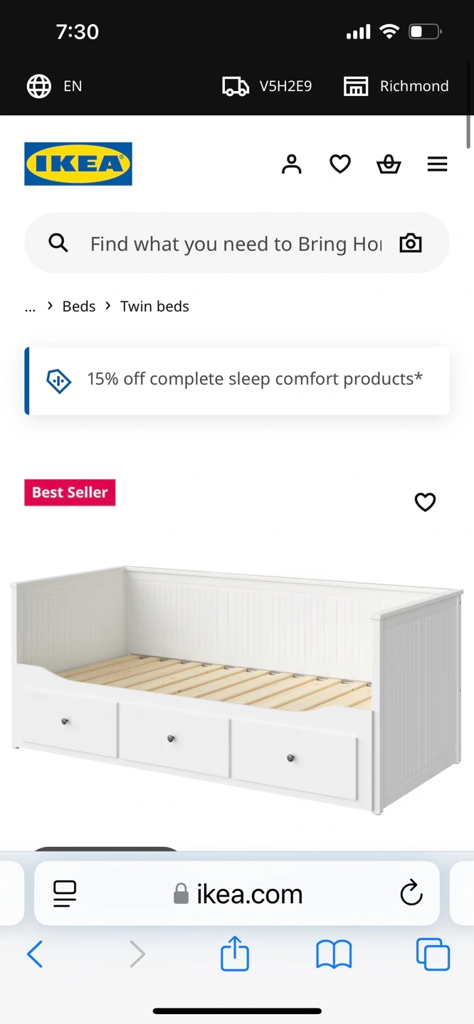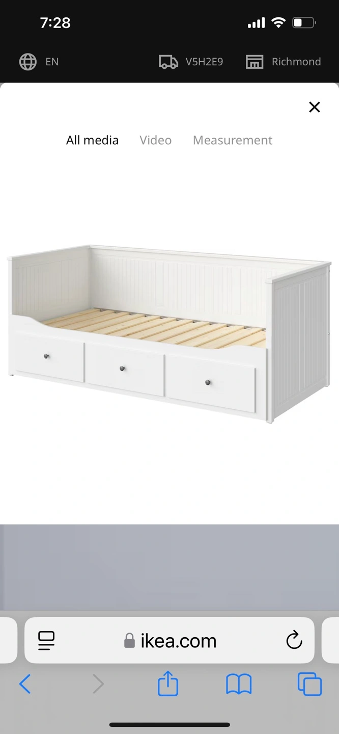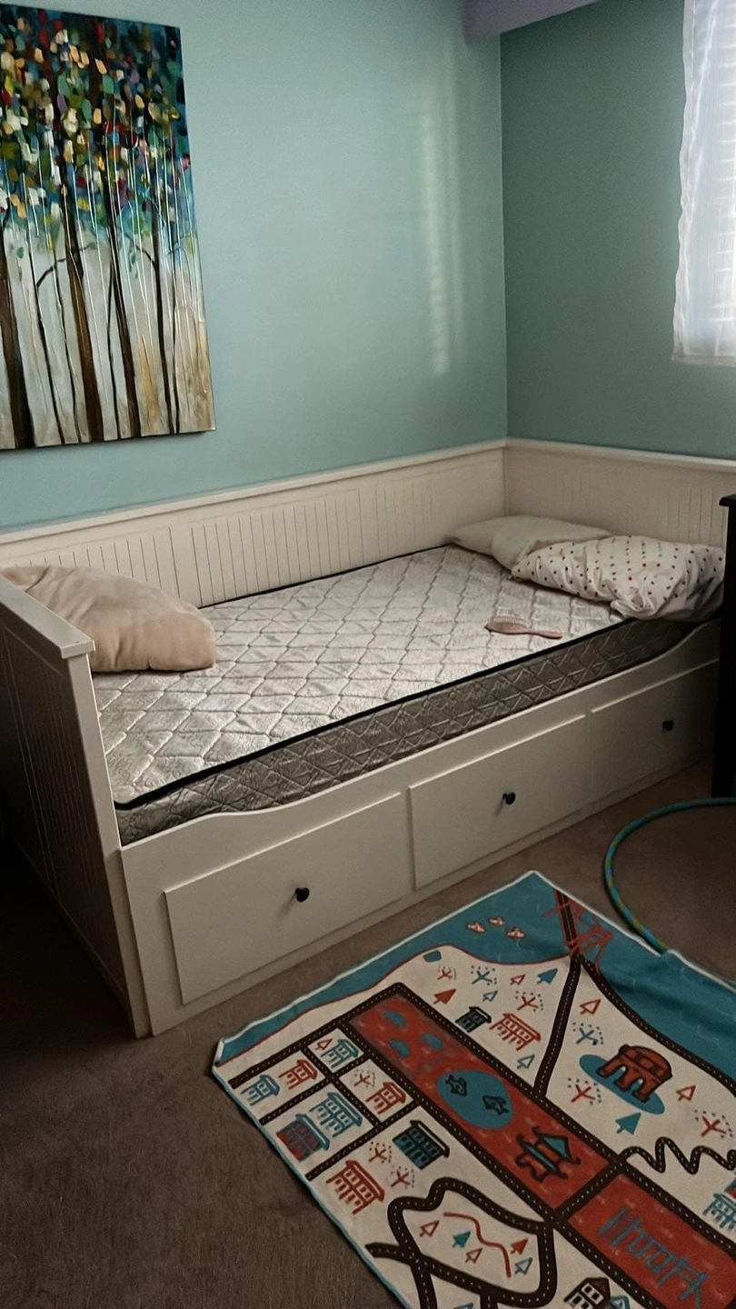 White twin-size trundle frame. Three drawers for storage. Good condition. Mattress and bed linens not included. Non smoking, pet friendly South Burnaby home. Check out my other listings!