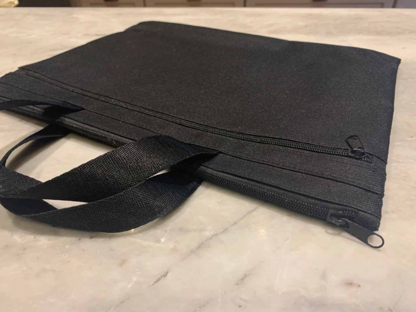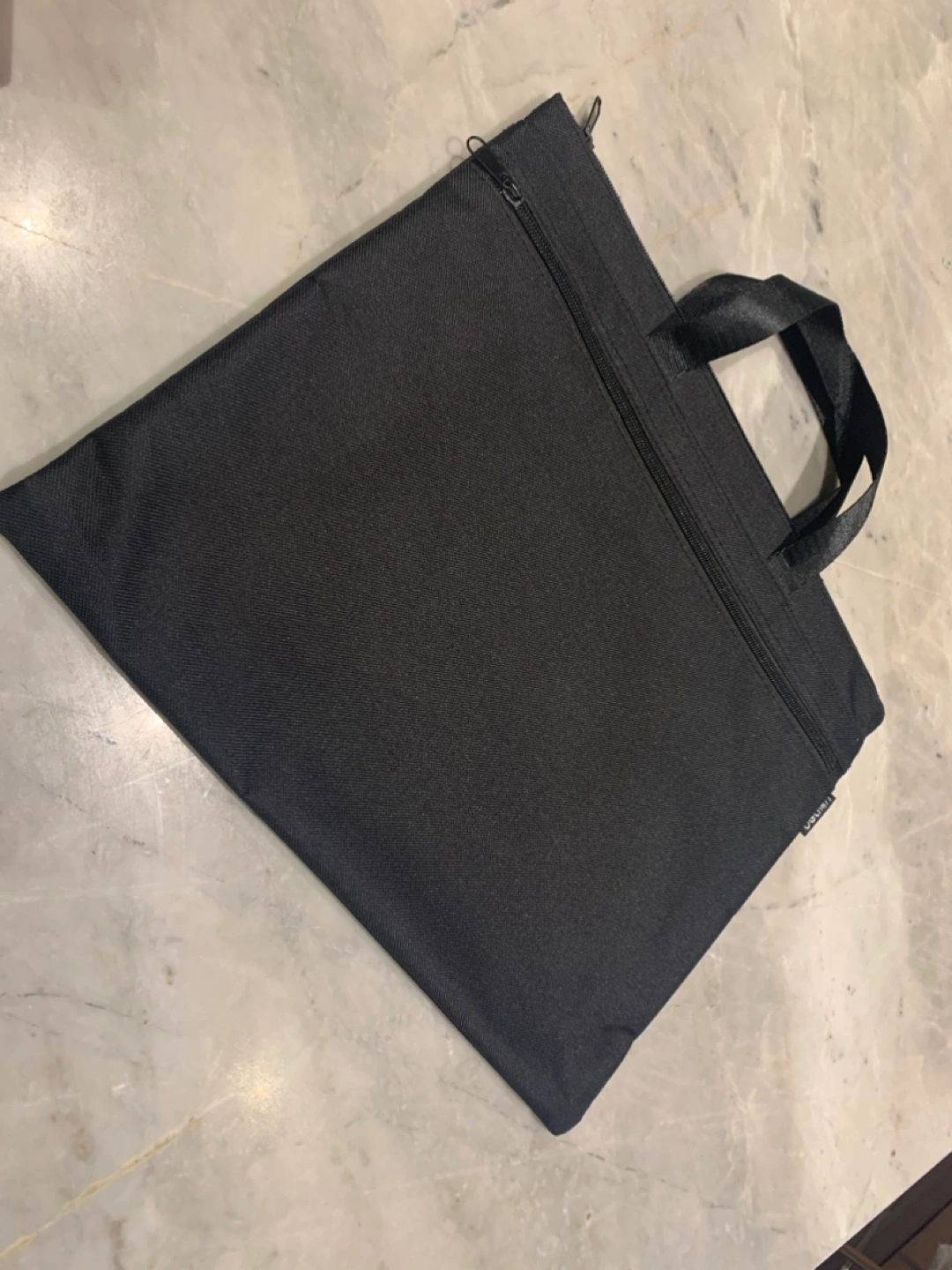 Deli Black Document Bag – Durable & Spacious Selling a black zippered document bag with handles. • Brand: Deli • Color: Black • Material: Durable fabric • Size: • Length: ~36 cm (14 inches) • Width: ~27 cm (10.5 inches) • Features: • Two zippered compartments for extra storage • Strong handles for easy carrying • Lightweight and water-resistant Perfect for carrying documents, laptops, or office essentials.
