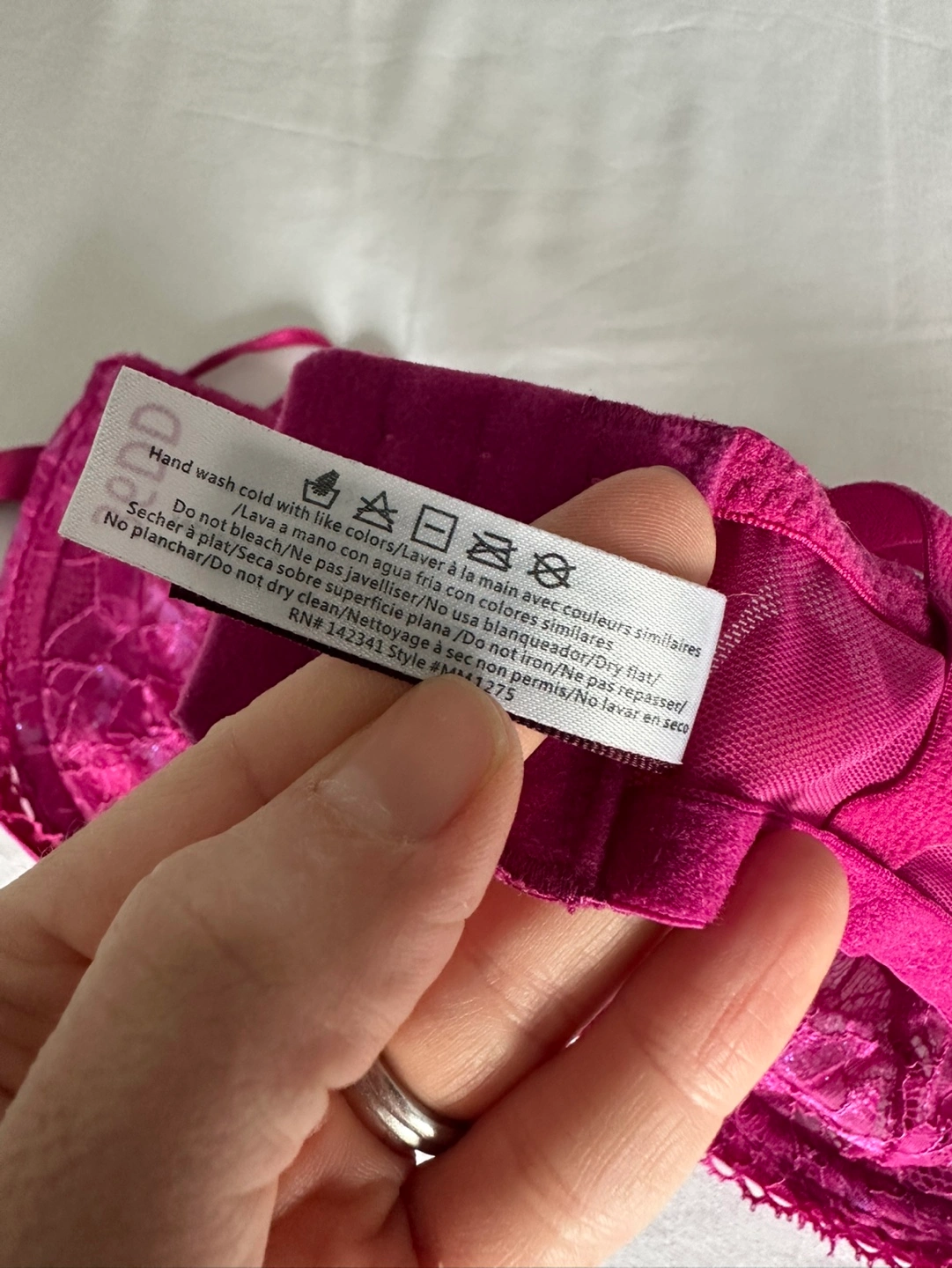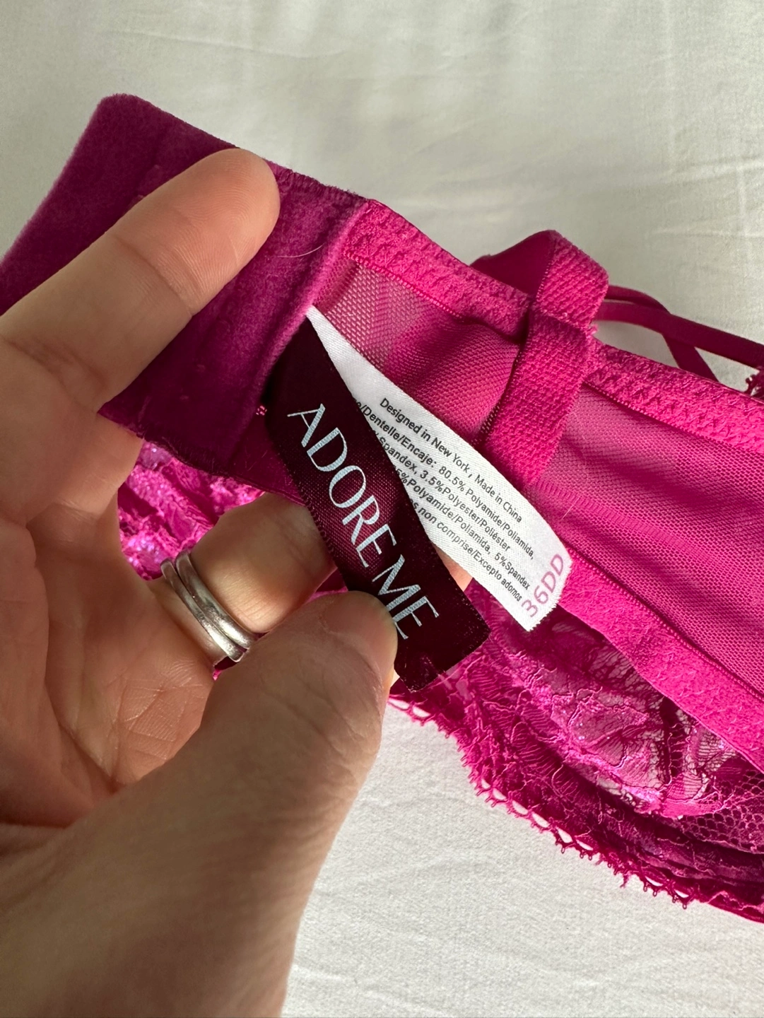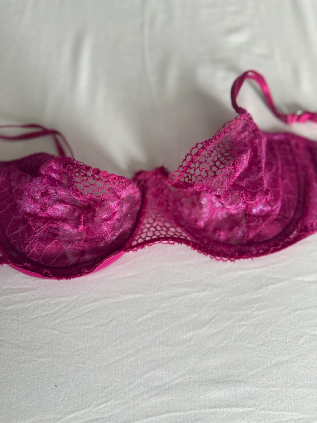 Gorgeous magenta lace bra. Features delicate detailing and adjustable straps. Hand wash recommended.