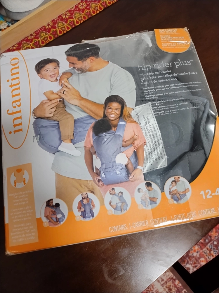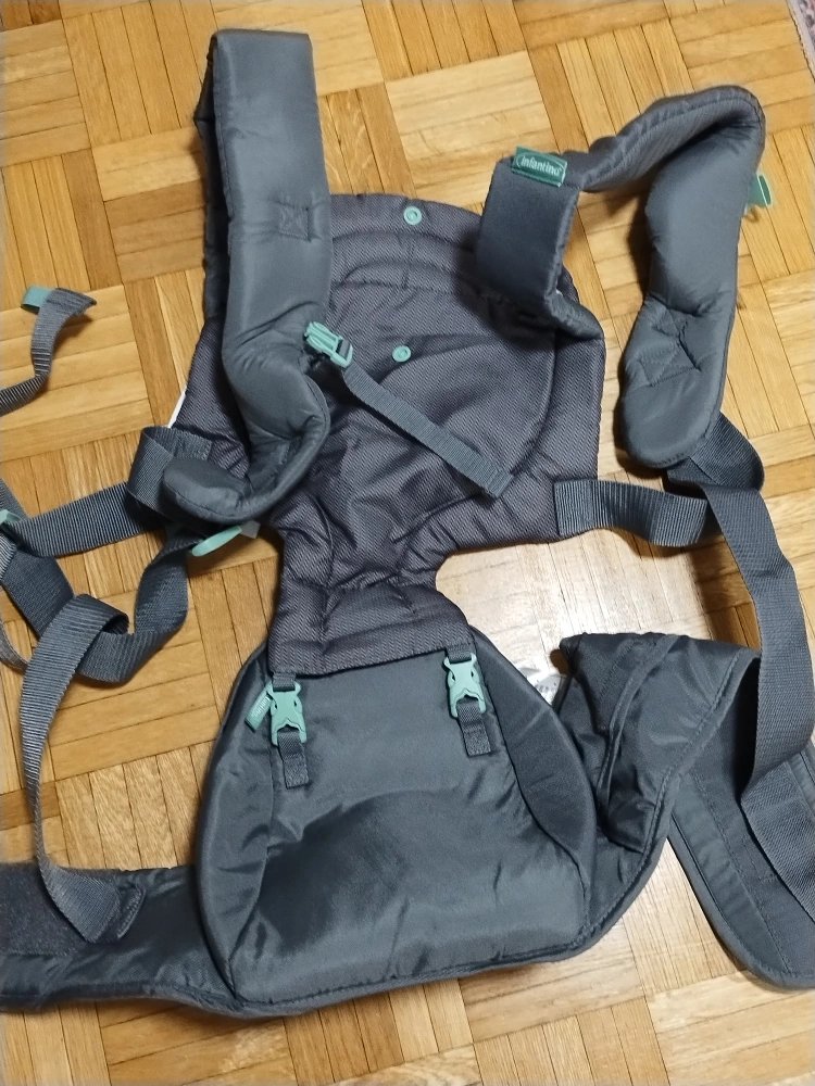 Used Infantino Hip Rider Plus baby carrier. Five-in-one design. Grey colour with teal accents. Good for carrying babies and toddlers.