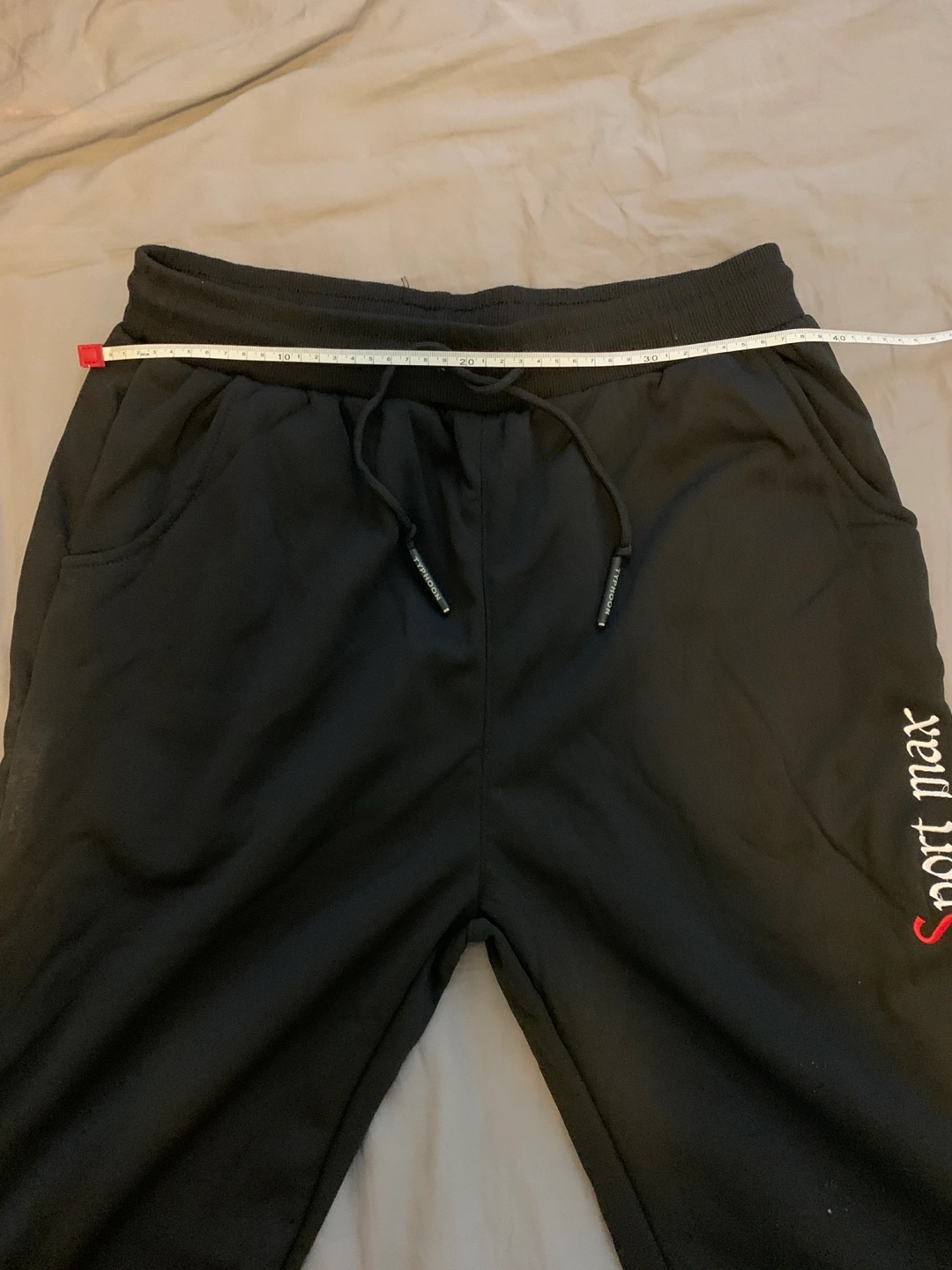Black fleece-lined joggers. Drawstring waistband. Side pockets. Sport Max logo on the leg. Great for lounging or working out.