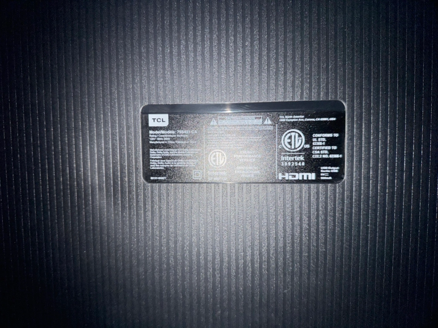 Large screen TV. Model 75S421CA. Great for home theatre. Selling as is. Only 5 months old
