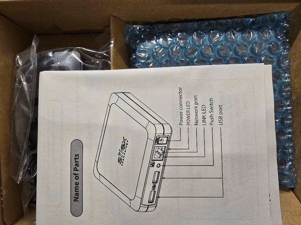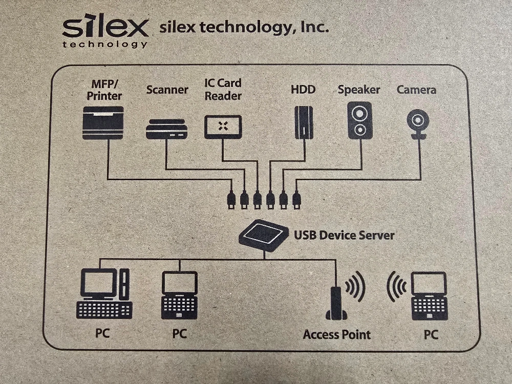 New in box Silex DS-510 USB Device Server. Includes AC adaptor and setup guide. Connects USB devices to a network. Ideal for sharing printers, scanners, and other peripherals.