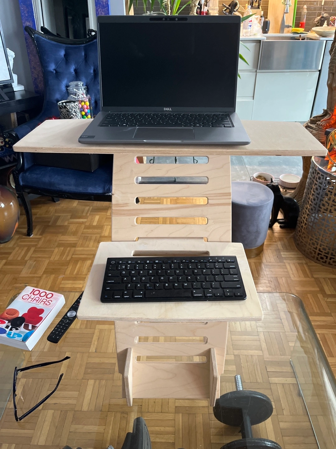 Wooden standing desk converter. Two-tiered design. Supports laptop and keyboard. Easy height adjustment. Unassembled. You can pick up by Carlton and Jarvis area Serious enquiries only please. Too many people wasting my time and low balling and not following up.