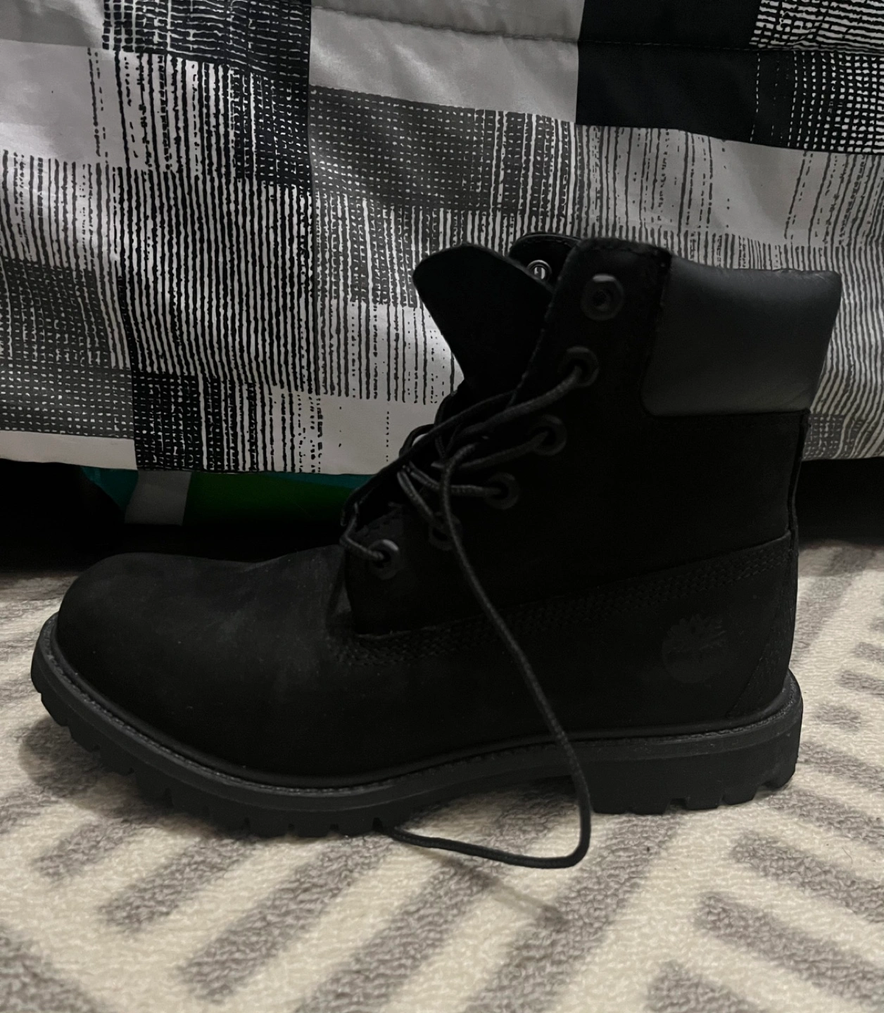 Women's black Timberland boots. Lace-up style. No box but great for everyday wear. Worn twice only. Like new condition.