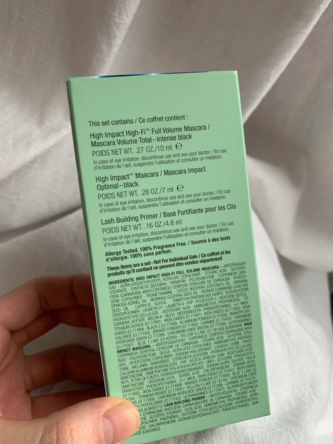 Product Description Enhance your lashes with this Clinique High Impact Lash Line-Up Mascara Set. This trio includes three formulas designed to help your lashes look their fullest. The High Impact mascara in a classic Black shade adds drama to your timeless look. The High Impact High-Fi Full Volume Mascara brings Intense Black to your lashes in an easy-on lightweight gel formula. The Lash building primer helps condition and boost your lashes to better hold mascara. This lush lash trio is fragrance-free and made without the use of parabens and phthalates. New, never used.