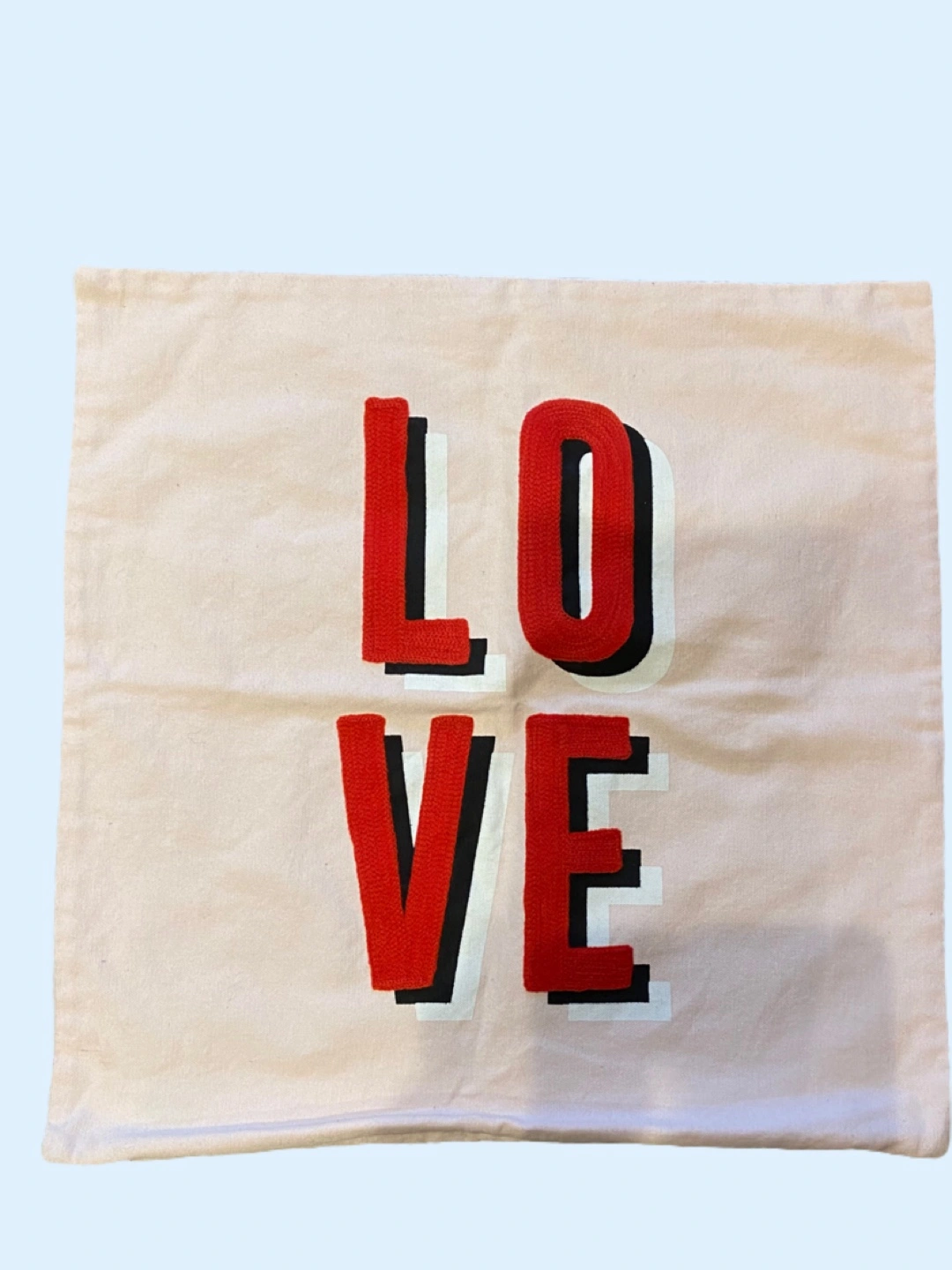 Add some love to your home with this LOVE pillow case. A blush pink with textured red and black letters. New without tags from Indigo. Broadview and Danforth