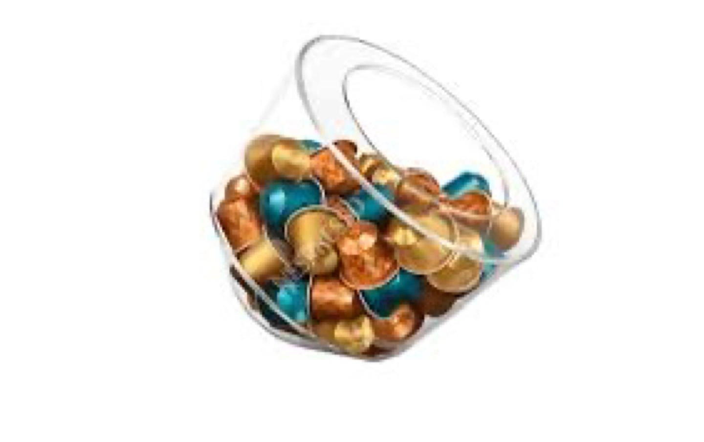 Glass coffee pods holder Nespresso Kerug Tassimo Product you get is on the first picture. the 2nd picture is serving suggestion Pickup at Balliol St. Midtown