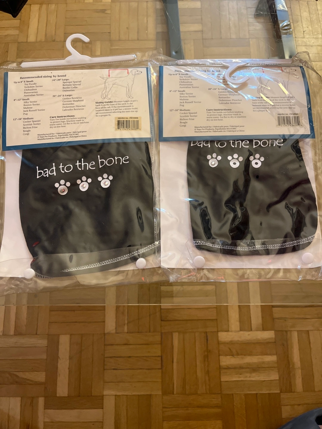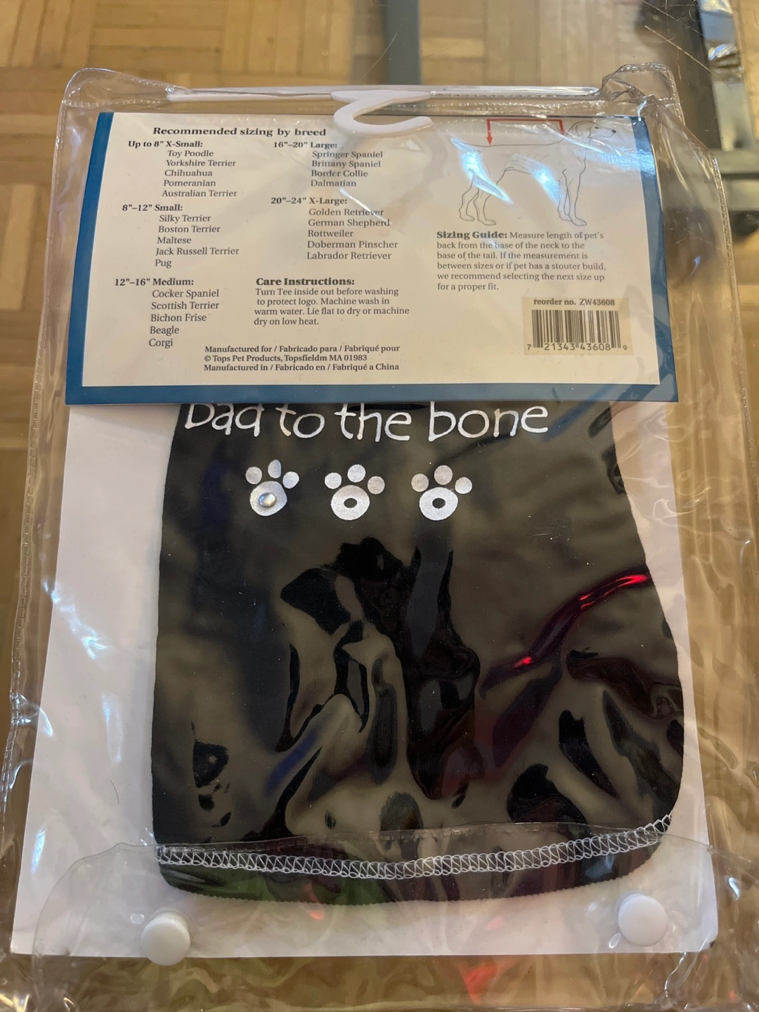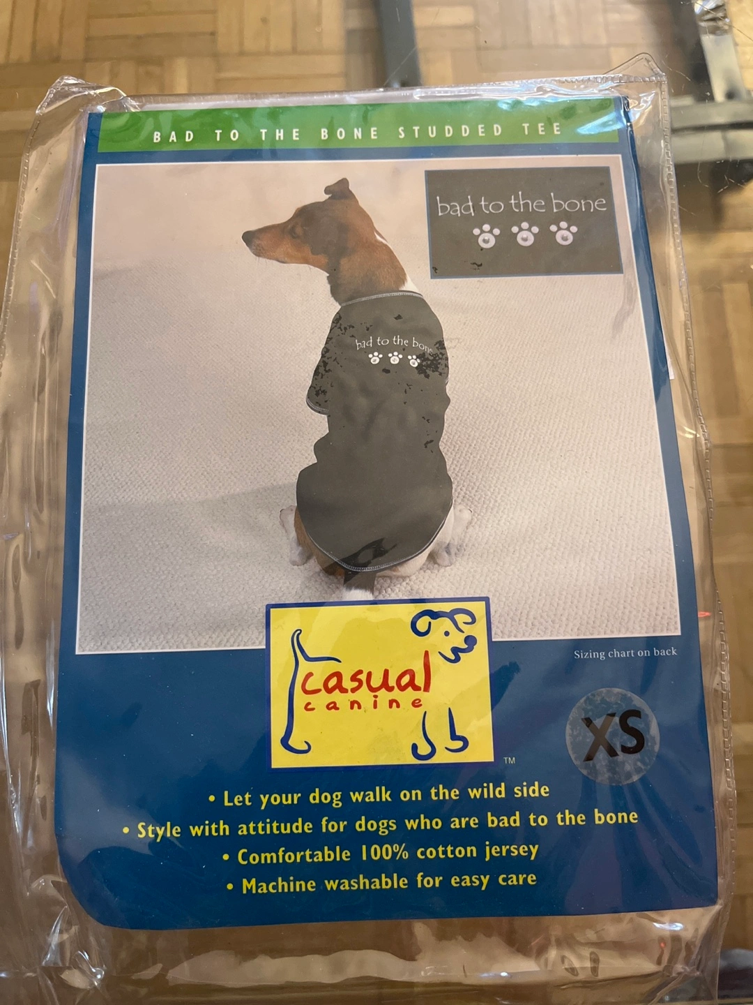 Brand new. Black cotton jersey dog shirt. Features "Bad to the Bone" text and paw prints. Machine washable. Size extra small. 15 each or 2 for 25 You can pick up by Carlton and Jarvis area