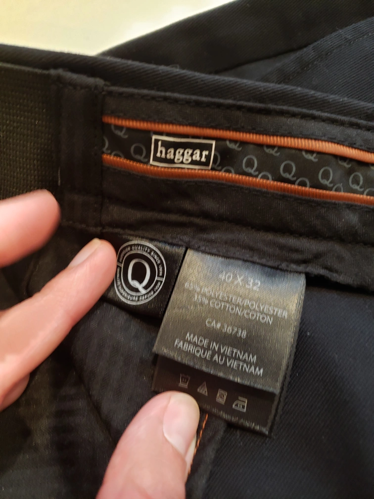 Size 40 waist by 32 leg Fine cotton blend No Iron Expandable Waistband Machine Washable