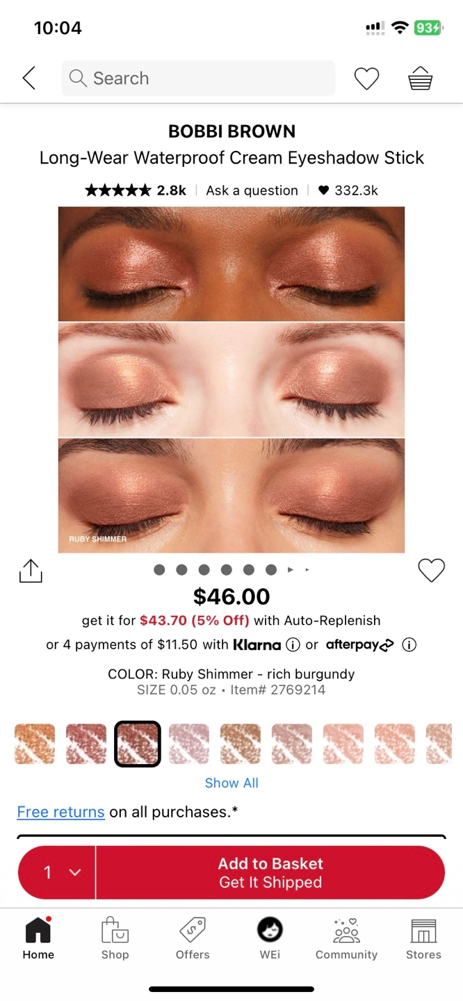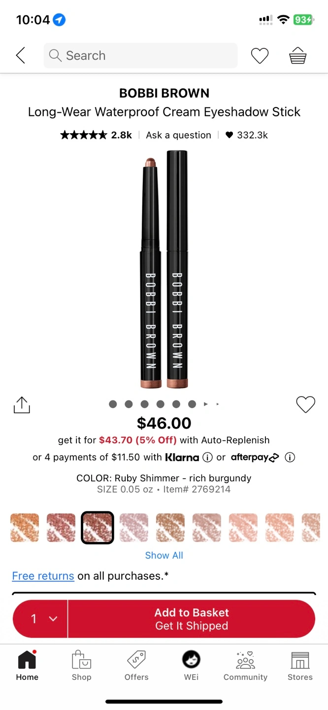 Bobbi Brown Long-Wear Waterproof Cream Eyeshadow Stick. Shade: Ruby Shimmer. Rich burgundy colour. New, unused.